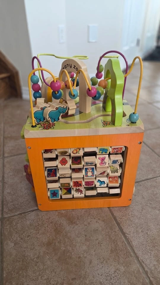 Excellent condition B. Toys Zany Zoo wooden activity cube. Five sides of fun to keep your toddler busy and learning!