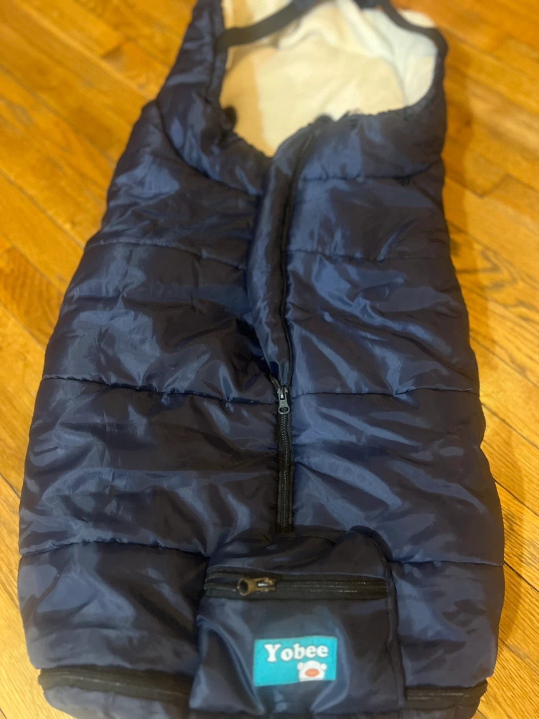 Keep your little one cozy with this Yobee baby bunting bag! It’s a great way to keep them warm during stroller rides or outings in cooler weather. The bag is navy blue and in great condition.
