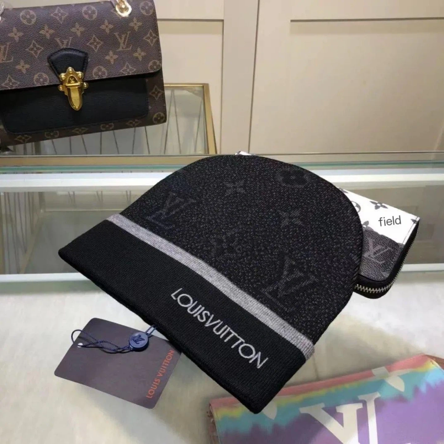 Selling a stylish Louis Vuitton beanie! It's in great condition and perfect for keeping warm during the colder months. Features the iconic LV design.
