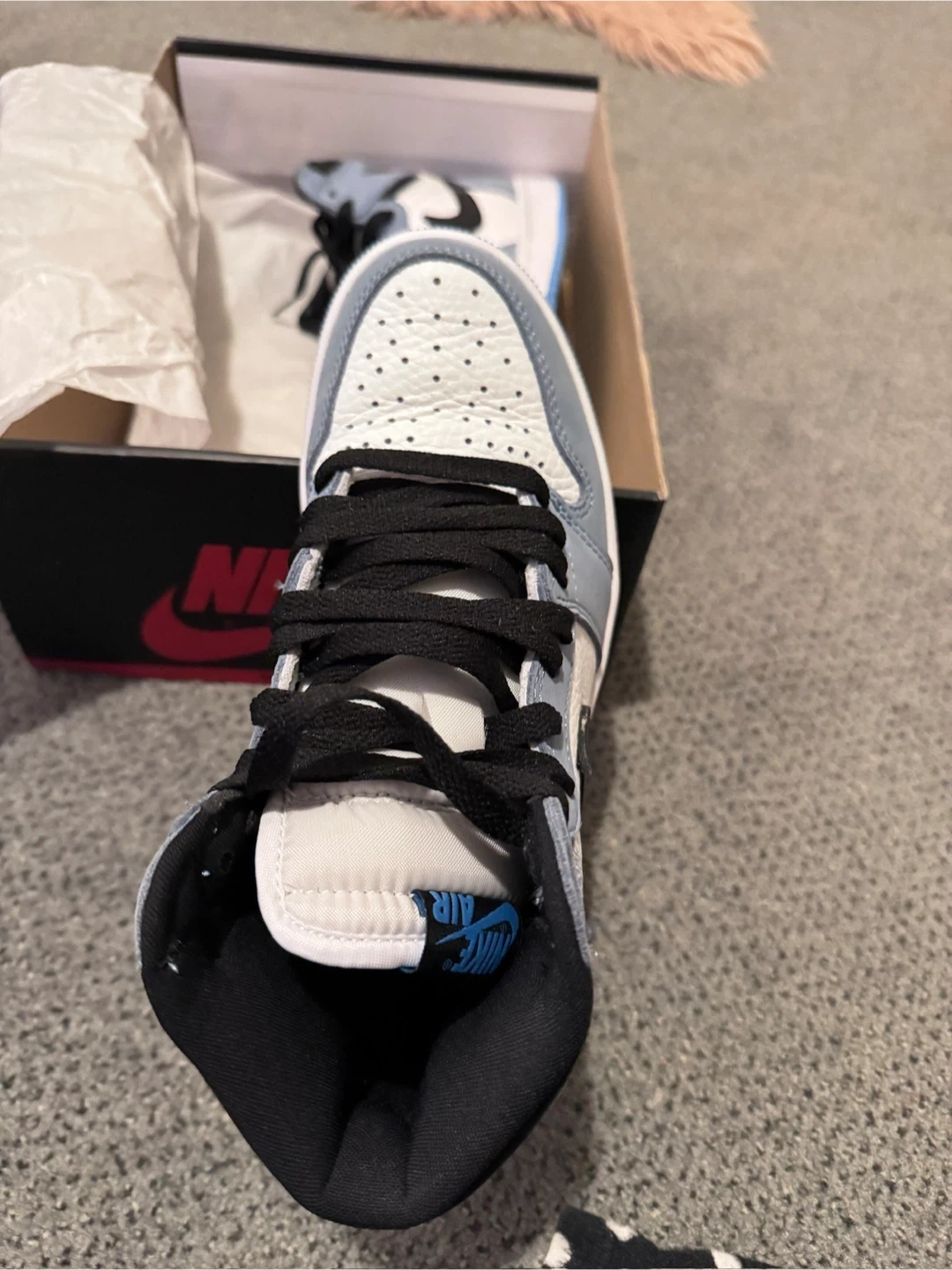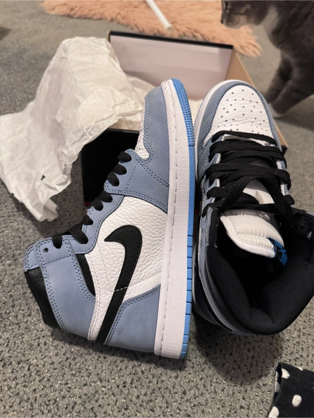 Buy & SellNike Air Jordan 1 Retro High University BlueNike Air Jordan 1 Retro High University Blue$150Selling a pair of Nike Air Jordan 1 Retro High in the University Blue colourway! These come with the original box.ConditionLike newSize6.5BrandNikeWHERE TO MEETLondon drugsView MapSELLERverifiedNelienTown Centre650 reviews0 chats·0 favorites·30 viewsSEND CHAT TO SELLERHi Nelien! I’m interested in your listing.Hi Nelien! I’m interested in your listing.Get the Karrot app to chatSign In to chat
