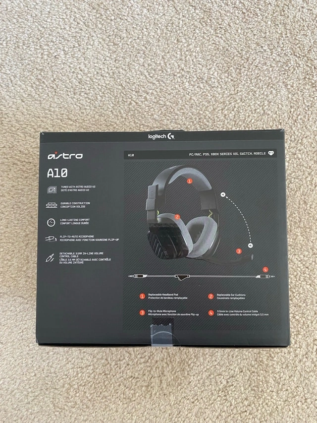 Brand new Astro A10 Logitech gaming headset, never used. Bought for $90. Works with PS5, Xbox Series X/S, PC/Mac, Switch, Mobile. Clear mic & strong sound. Comfortable and durable (Astro quality). Original condition, no issues. Perfect for gaming or streaming. If the ad is up, it’s available.