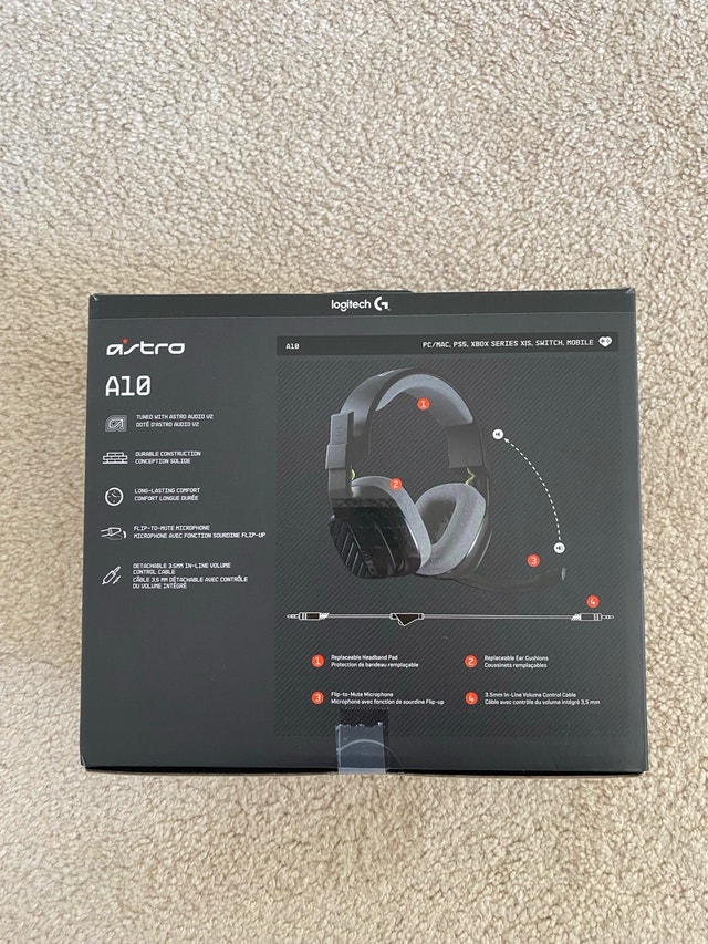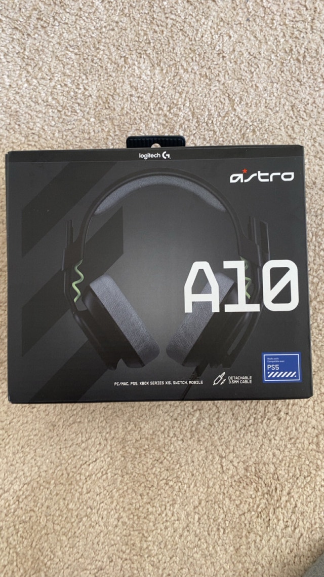 Brand new Astro A10 Logitech gaming headset, never used. Bought for $90. Works with PS5, Xbox Series X/S, PC/Mac, Switch, Mobile. Clear mic & strong sound. Comfortable and durable (Astro quality). Original condition, no issues. Perfect for gaming or streaming. If the ad is up, it’s available.