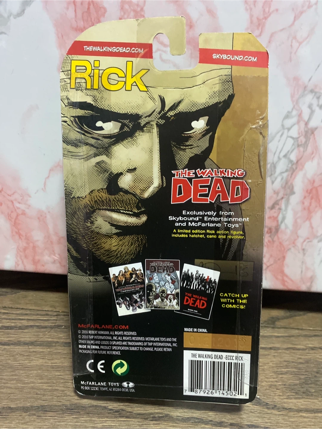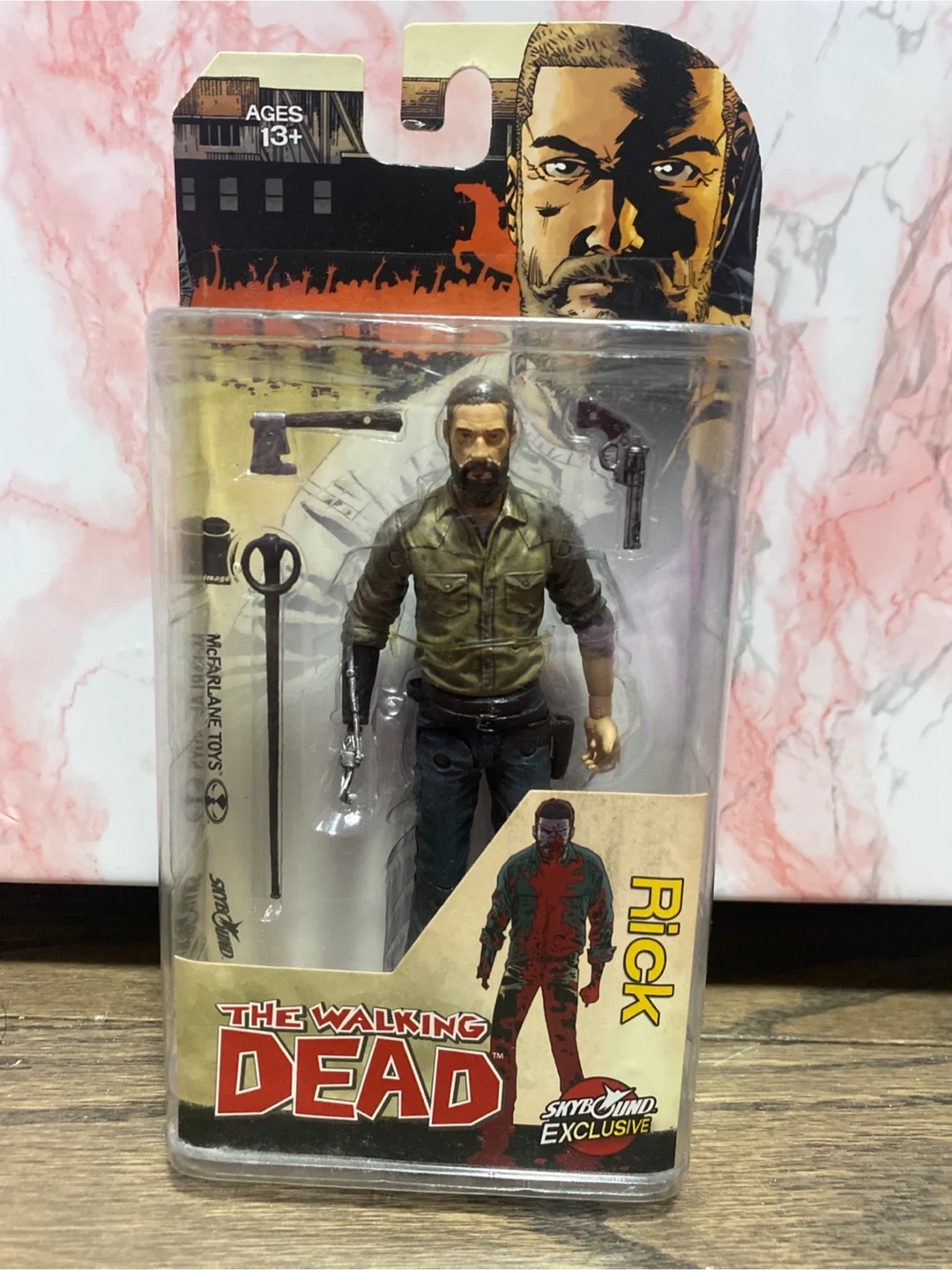 Selling a The Walking Dead Rick Grimes action figure. This is a limited edition figure from Skybound Entertainment and McFarlane Toys. It includes a hatchet, cane, and revolver. Great for any fan of The Walking Dead!