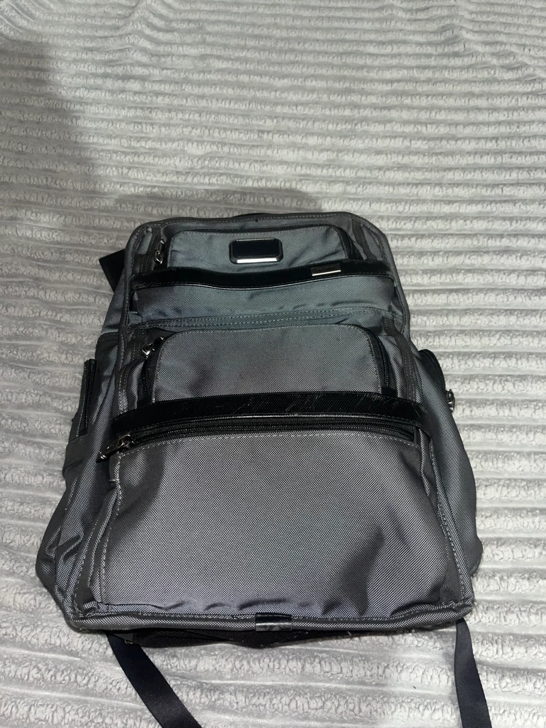 Selling a Tumi backpack in gray! It has a lot of compartments and is in great condition only wear like couple times always pack stuff in it no use for it come and get it now.