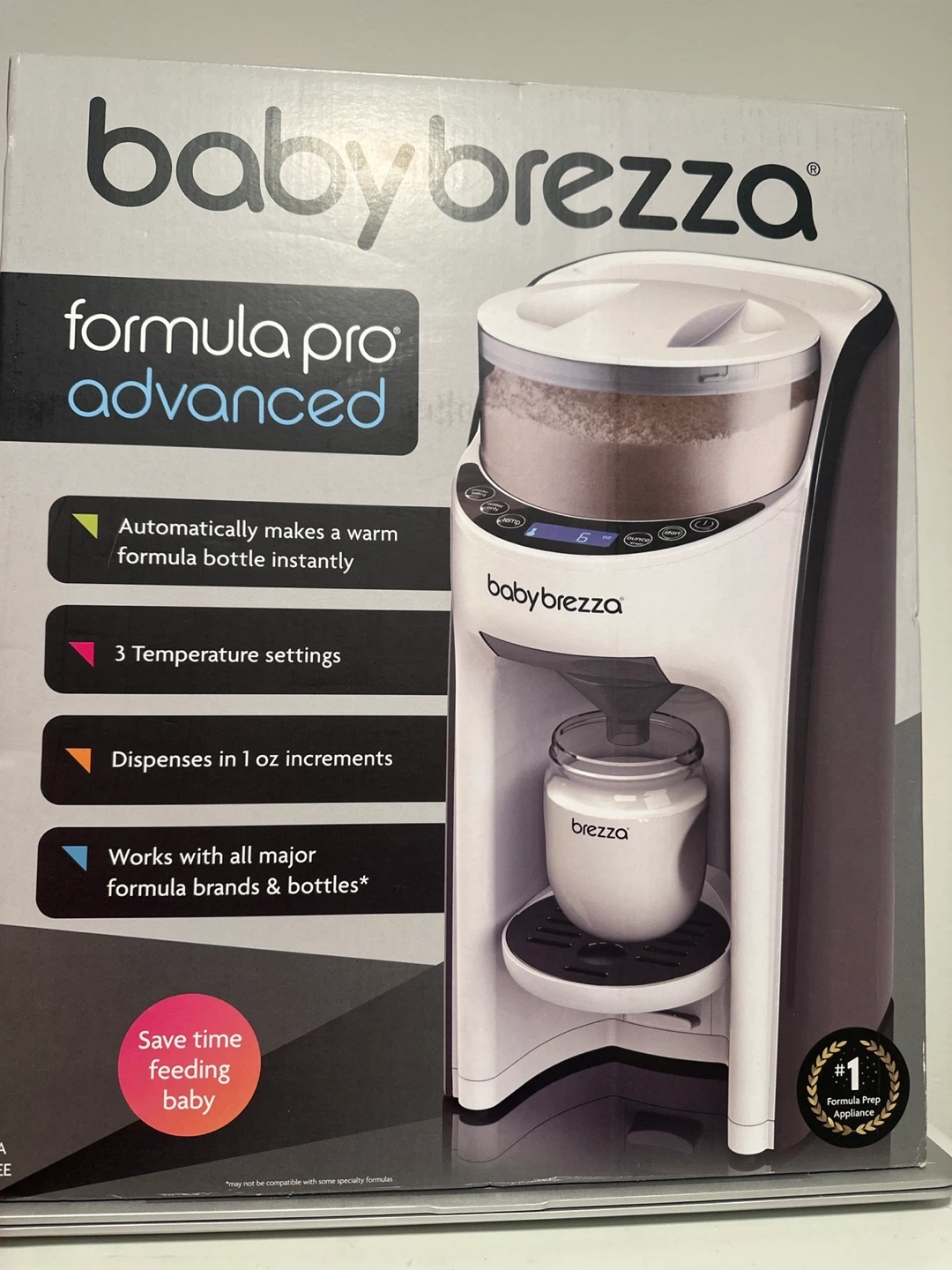 Selling a Baby Brezza Formula Pro Advanced. It automatically makes a warm formula bottle instantly. It has 3 temperature settings and dispenses in 1 oz increments. It works with all major formula brands & bottles