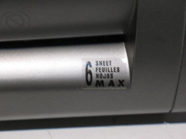 GBC 6 Sheet Paper Shredder in perfect working order. Cuts up to 6 sheets of paper. Includes a large bin for shredded paper. Forward, reverse, and automatic feed. Safety feature allows fingers to stay safe.