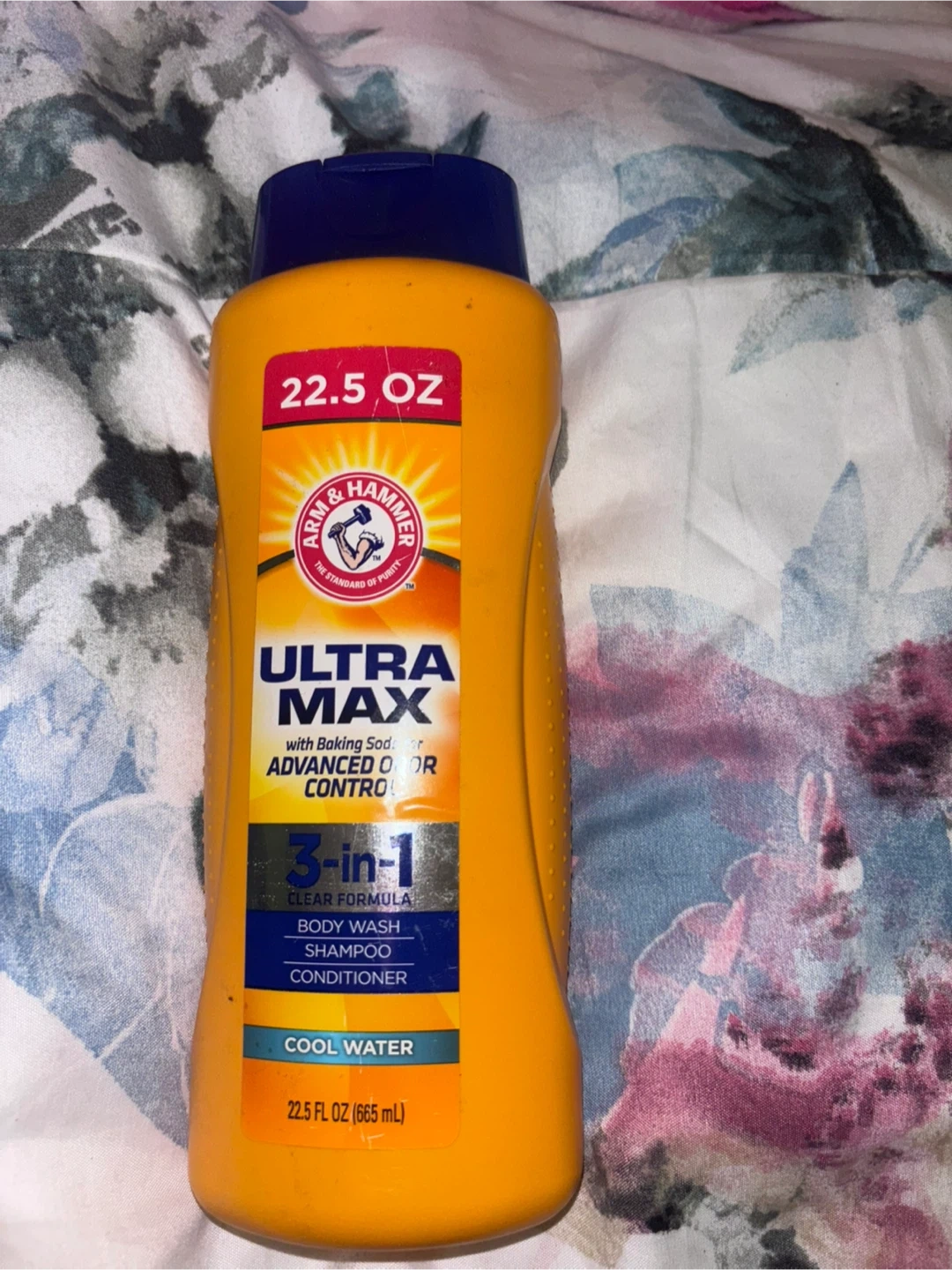 Selling an Arm & Hammer Ultra Max 3-in-1. It's a clear formula that works as a body wash, shampoo, and conditioner. It has advanced odor control with baking soda. The bottle contains 22.5 fl oz (665 mL)