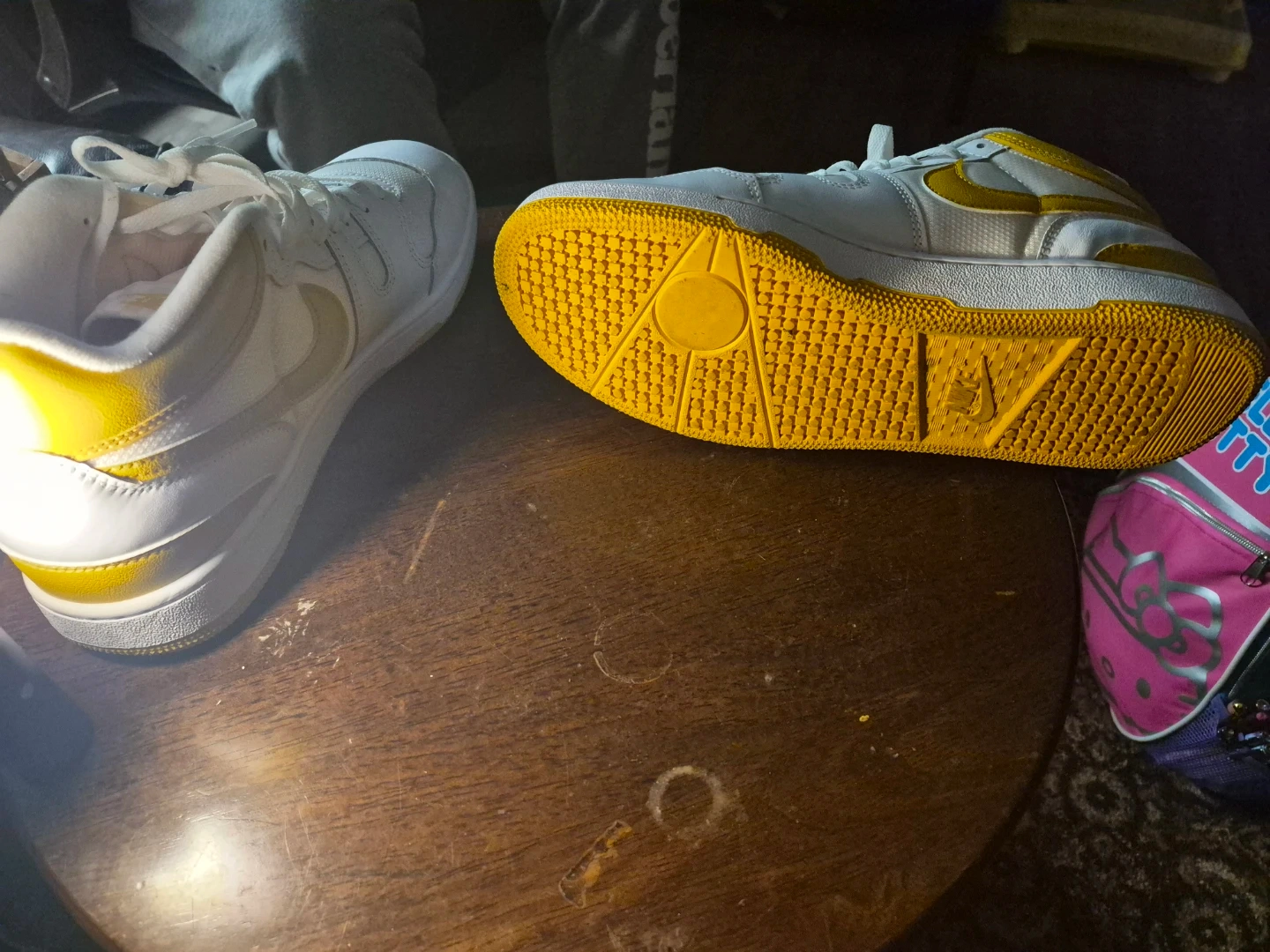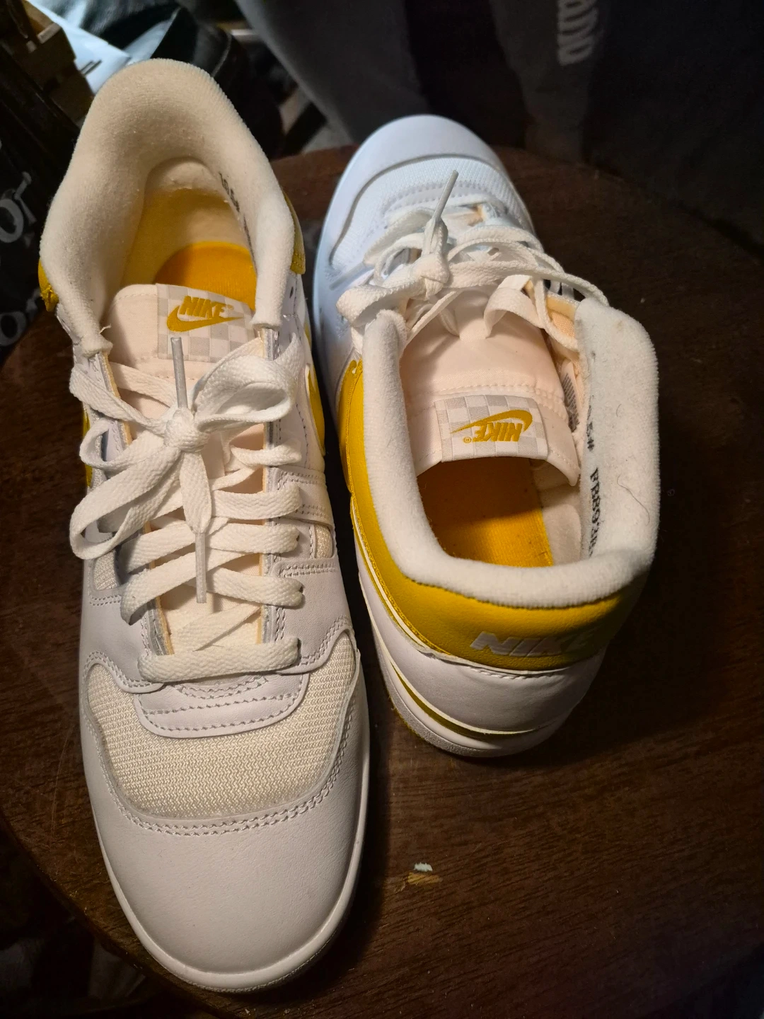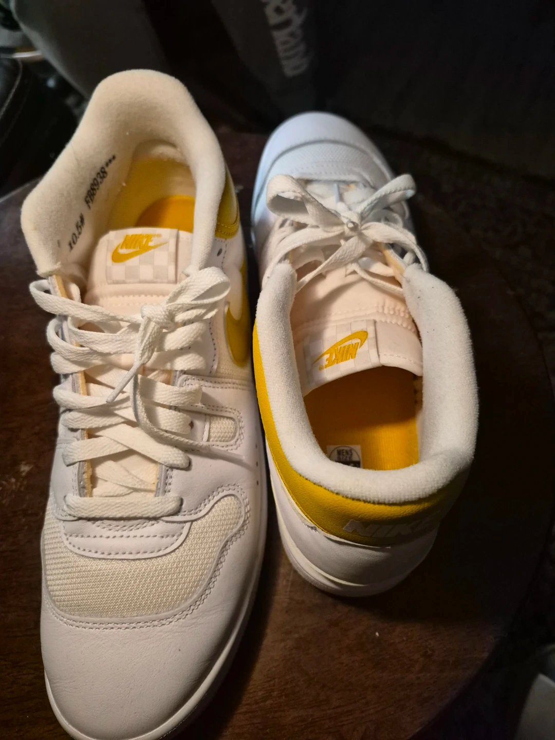 Selling a pair of Nike Court Vision Low sneakers in white and yellow. They are a size 10.5. These shoes are in good condition and ready for a new owner!