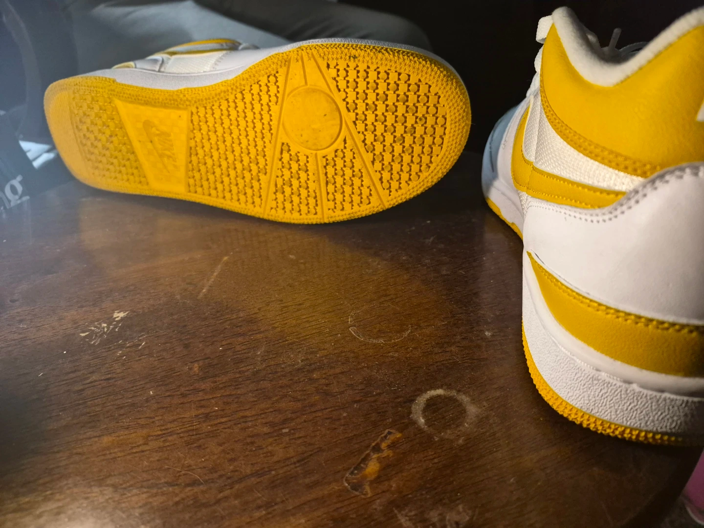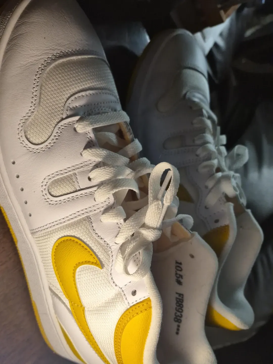 Selling a pair of Nike Court Vision Low sneakers in white and yellow. They are a size 10.5. These shoes are in good condition and ready for a new owner!