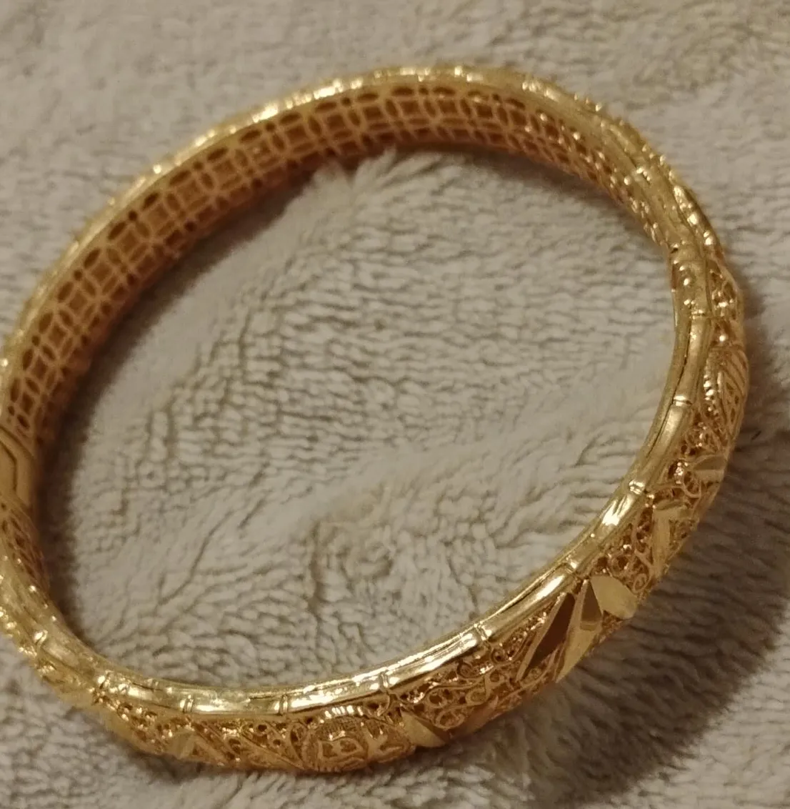 Buy & SellGold Covered Bangle BraceletGold Covered Bangle Bracelet$42Selling a beautiful gold tone covered bangle bracelet. It has intricate designs and is in great condition!WHERE TO MEETCheck LocationView MapSELLERMagalyMiddle Village663 reviews1 chats·1 favorites·169 viewsSEND CHAT TO SELLERHi Magaly! I’m interested in your listing.Hi Magaly! I’m interested in your listing.Get the Karrot app to chatSign In to chat