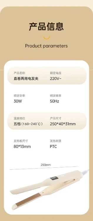 This hair straightener is designed for easy use and portability. It heats up quickly in 30 seconds with MCH heating technology, ensuring a stable temperature for styling. Features include: