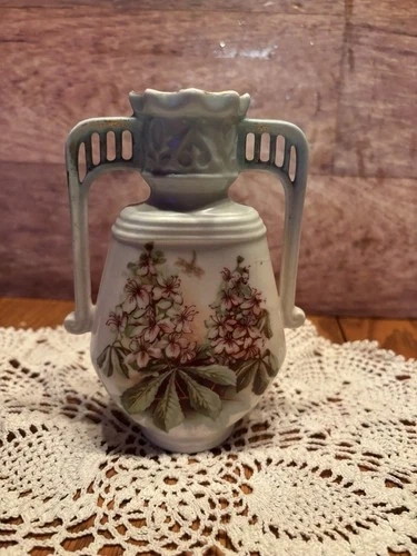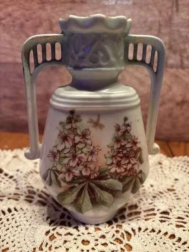ANTIQUE HAND PAINTED FLORAL AUSTRIAN PORCELAIN VASE