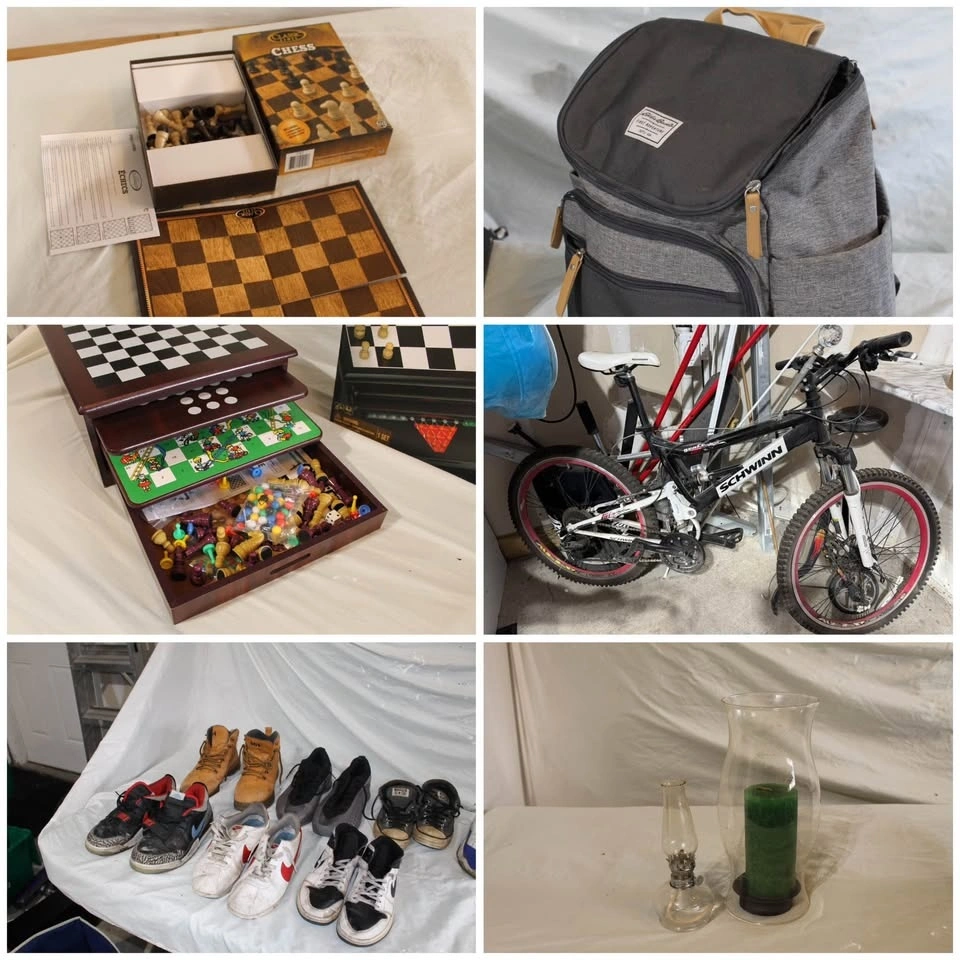 For Sale: Multiple Items in Various Conditions • Game Boards: $10 • Longboards: $25 • Bicycles: $20 • Backpacks: $15 • Diaper Backpacks: $15 • Star Wars Game (New): $20 • Sewing Machine (Classic with Accessories): $35 • Shoes (Various Pairs): $10 • Candles: $5 • Guitar (With New Strings): $50 • Figurines and Glass Items: $5 • Chicha Bottle (Complete Set): $30 • Chess Game (Simpsons Version): $20 • Winter Boots: $10 • Porcelain Plates: $20 the whole box with lots of plates • Glass Figurines (Animal Designs): $5 • Hockey Collectibles (Mini Shirts): $10 • Cremation Urn: $15 • Mortar (Kitchen Use): $10 • Ice Skates (Size 12): $10 • Mounted Stuffed Fish: $50