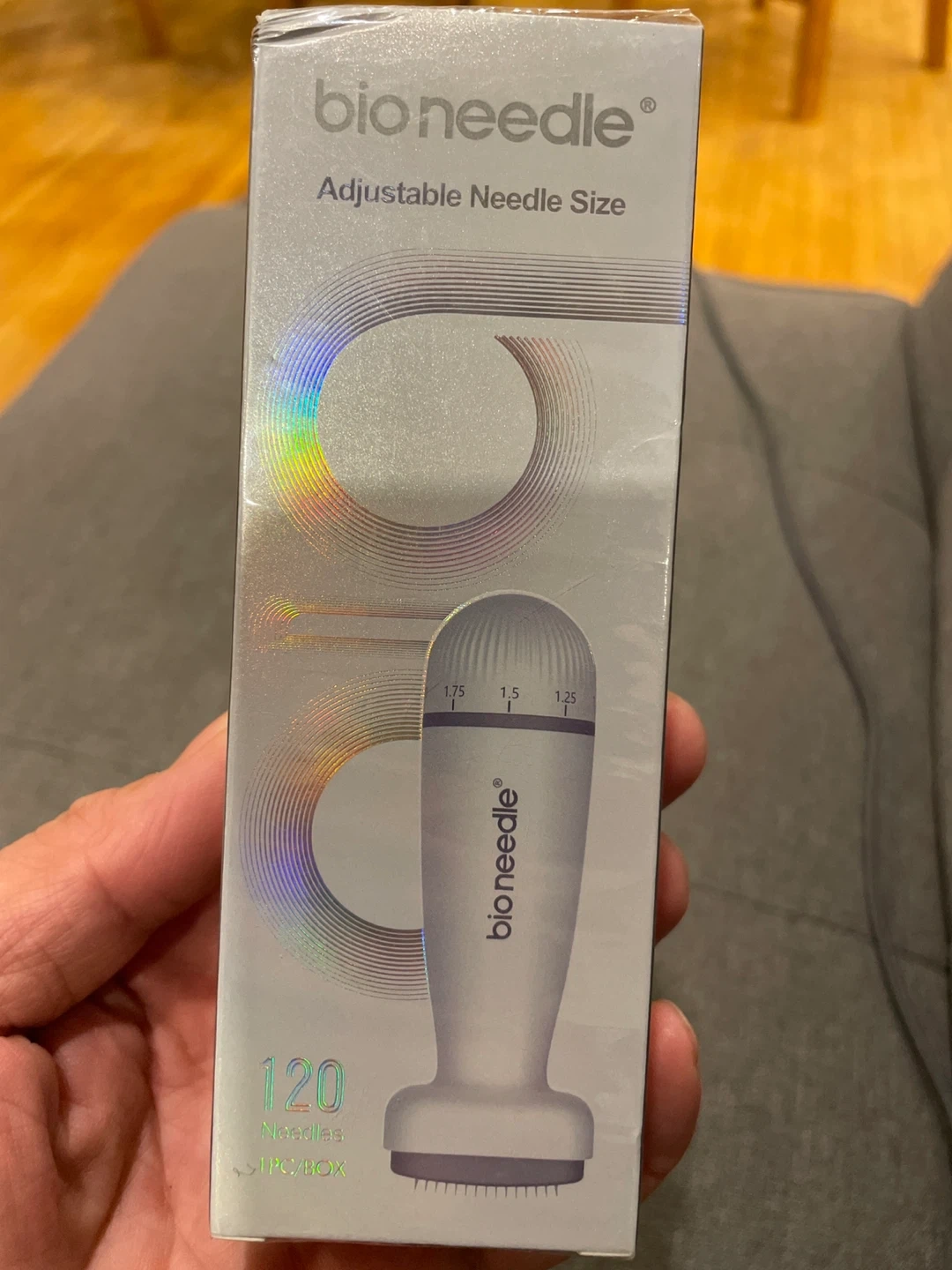 Selling a new bioneedle with adjustable needle size! It comes in its original box and includes instructions for use. To use, remove the protecting cover, sterilize the stamp head with 75% alcohol, apply a suitable nutritional lotion or cream, adjust the needle length, and stamp on areas that need care by moving up and down vertically. Afterward, apply nutrition or a mask product to the skin if inflammation occurs