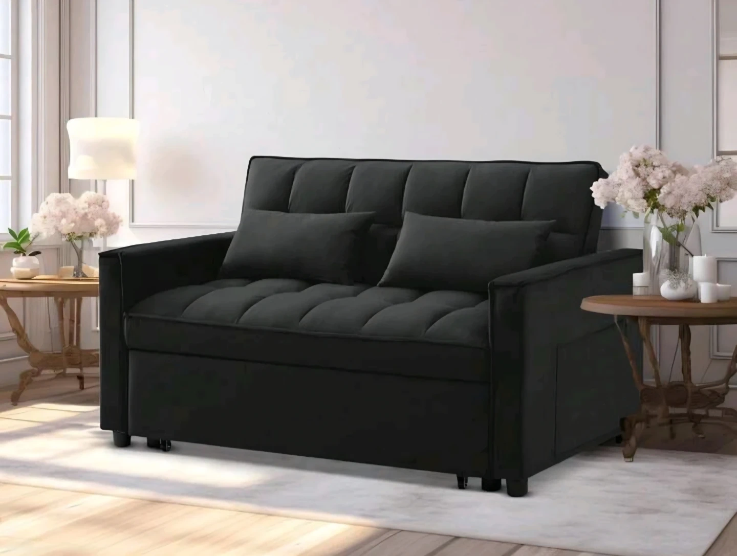 Black Corduroy U-Shaped Sectional Sofa