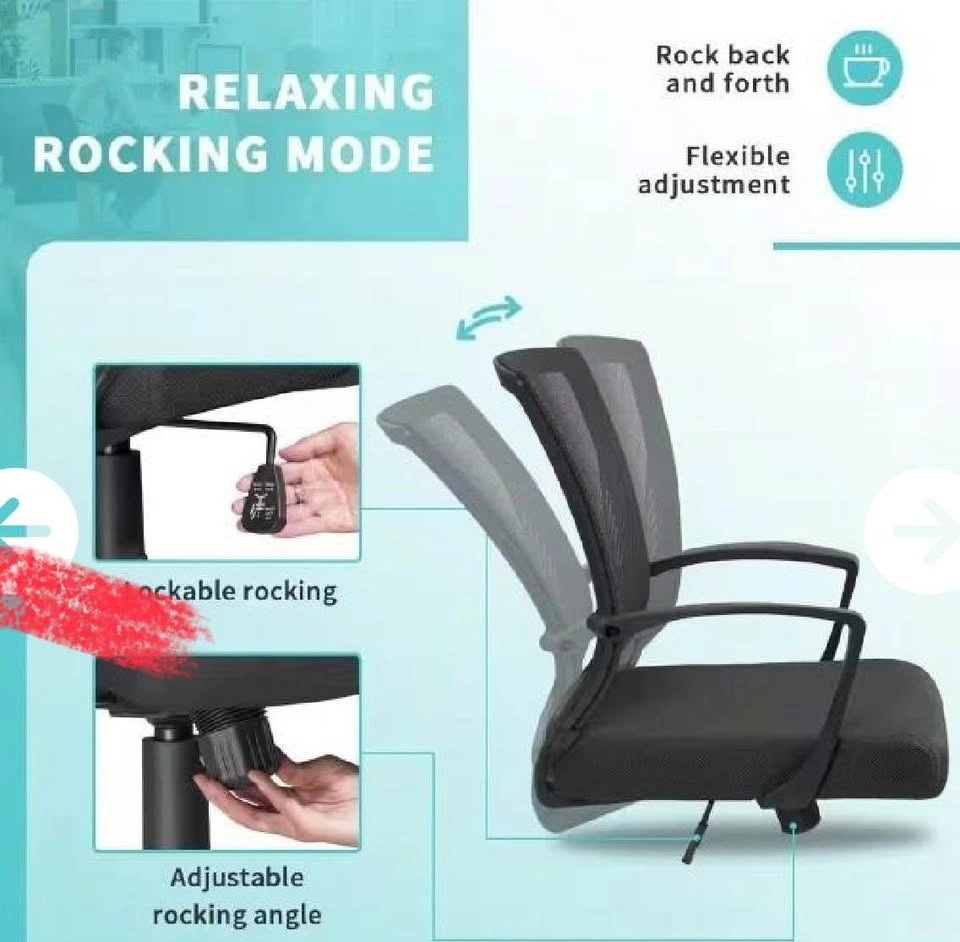 Experience comfort and support with this adjustable ergonomic office chair, perfect for desk and computer use. Designed with a breathable mesh back and soft padded seat to reduce sweat and backache, it’s ideal for long hours of work.