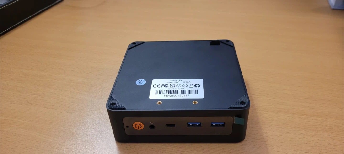 Selling a Beelink Mini PC, Model E4. It's barely used and in perfect condition. This compact PC offers a variety of ports for connectivity, including USB and Ethernet. Perfect for home or office use!