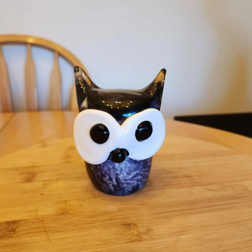 Hand Blown Art Glass Owl, Decor, Paper Weight