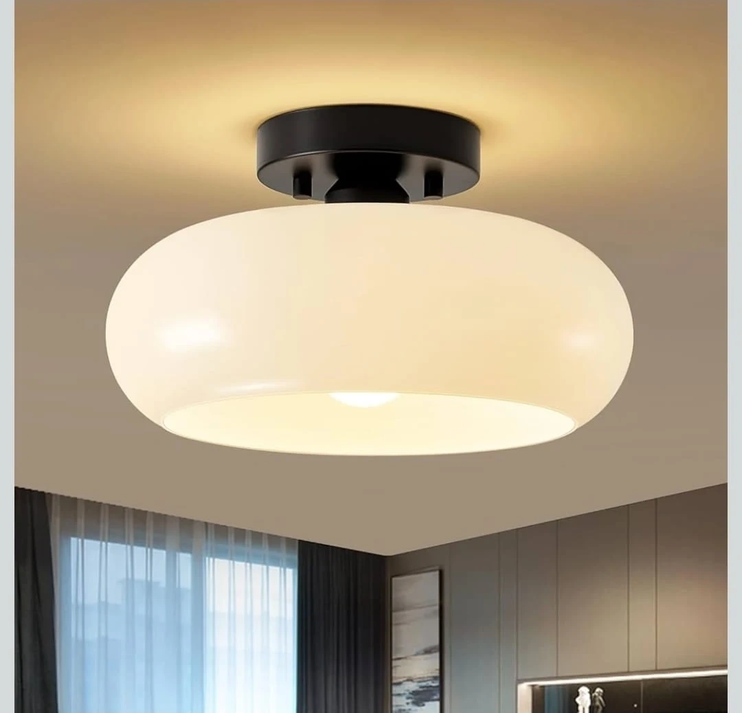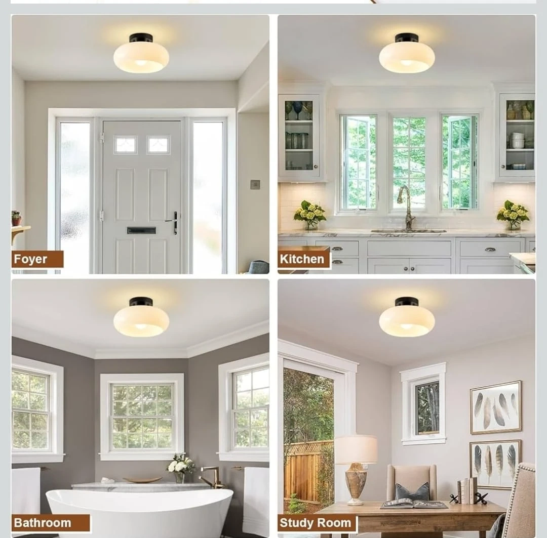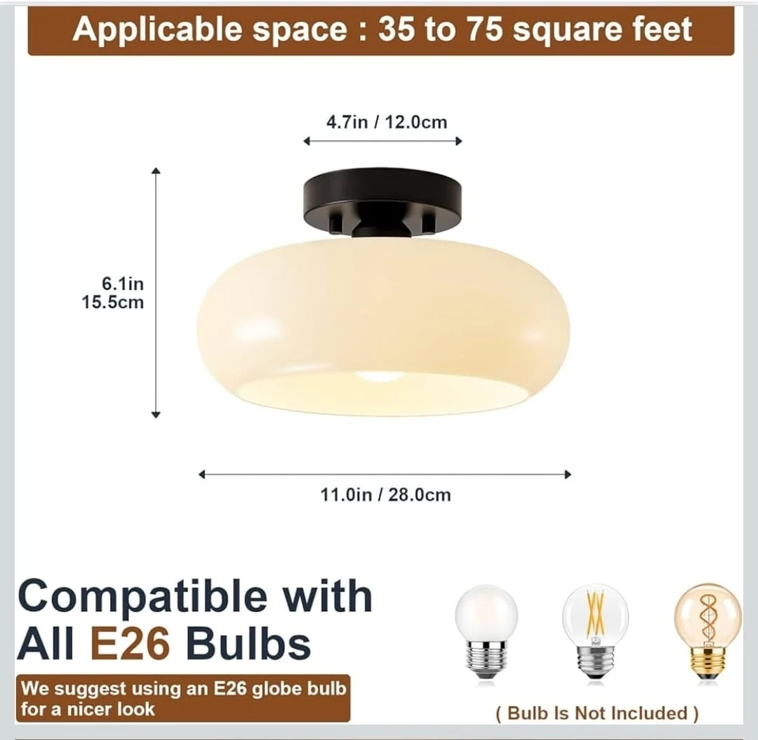 This flush mount ceiling light fixture is perfect for adding a touch of modern style to any room! It's compatible with all E26 bulbs, and the applicable space is 35 to 75 square feet. The dimensions are 4.7in/12.0cm x 11.0in/28.0cm x 6.1in/15.5cm