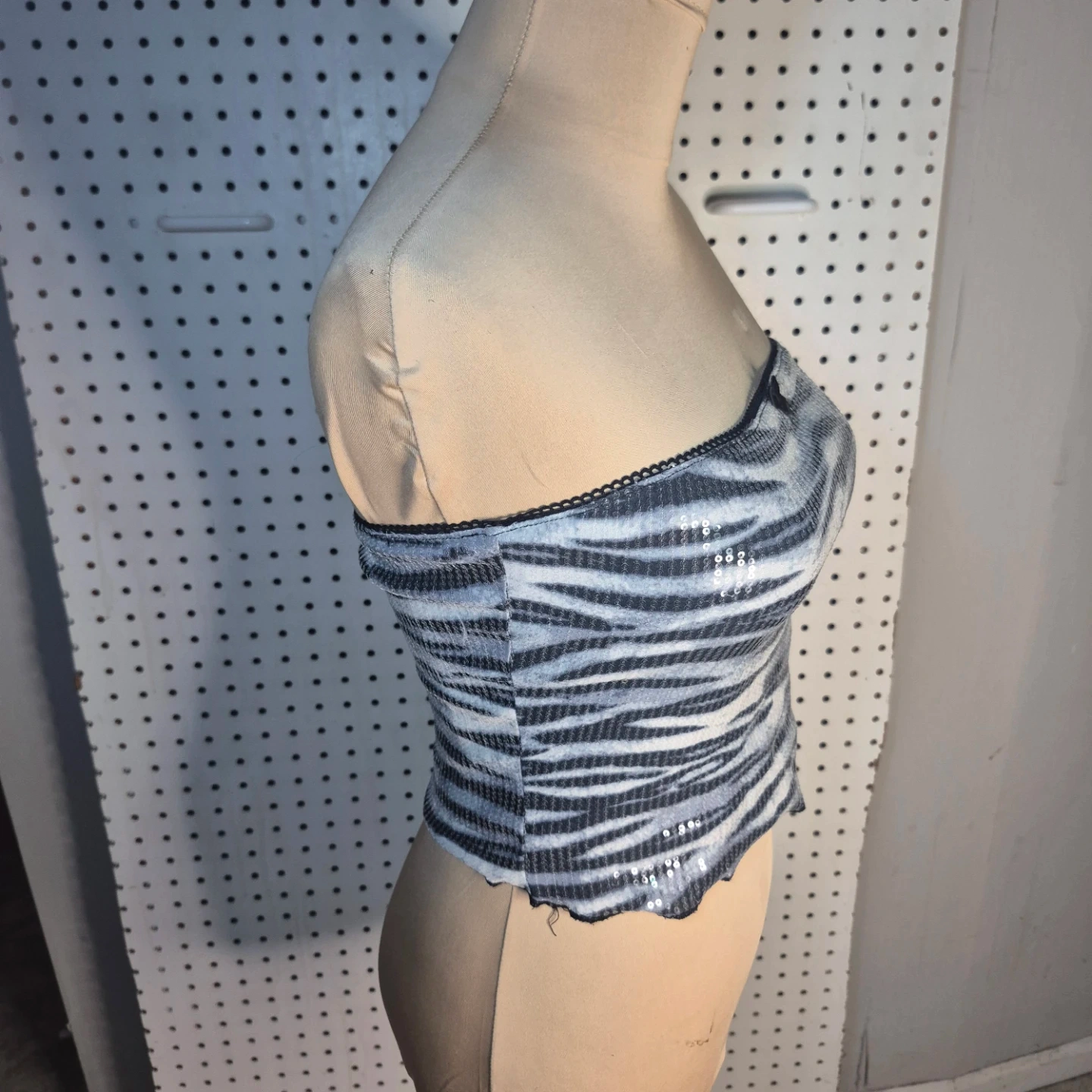 Buy & SellZebra Print Sequin Tube TopZebra Print Sequin Tube Top$10Cute tube top with a zebra print pattern and sequins! It has a little bow in the front, perfect for a night out. Worn twiceConditionLike newSizesmallWHERE TO MEETCheck LocationView MapSELLERverifiedmymymeoMontecito78870 reviews0 chats·0 favorites·1 viewsSEND CHAT TO SELLERHi mymymeo! I’m interested in your listing.Hi mymymeo! I’m interested in your listing.Get the Karrot app to chatSign In to chat