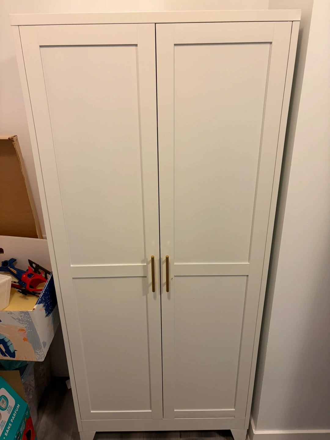 Selling a white wardrobe cabinet. It's in great condition and perfect for extra storage in your home. A great way to organize your clothes and other belongings! Can be fit in SUV easily. Pick up only