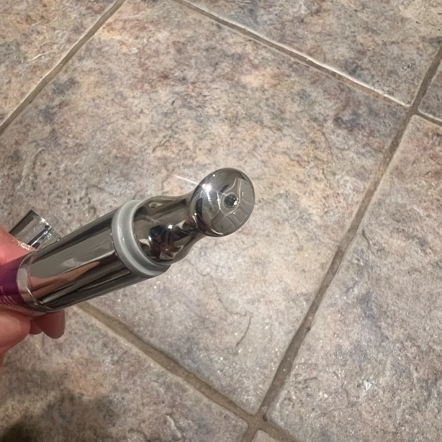 Still about 3/4 of the product. Tip vibrates to allow deep absorption into the skin. Apply to under eye or frown lines. Tip is sanitized.