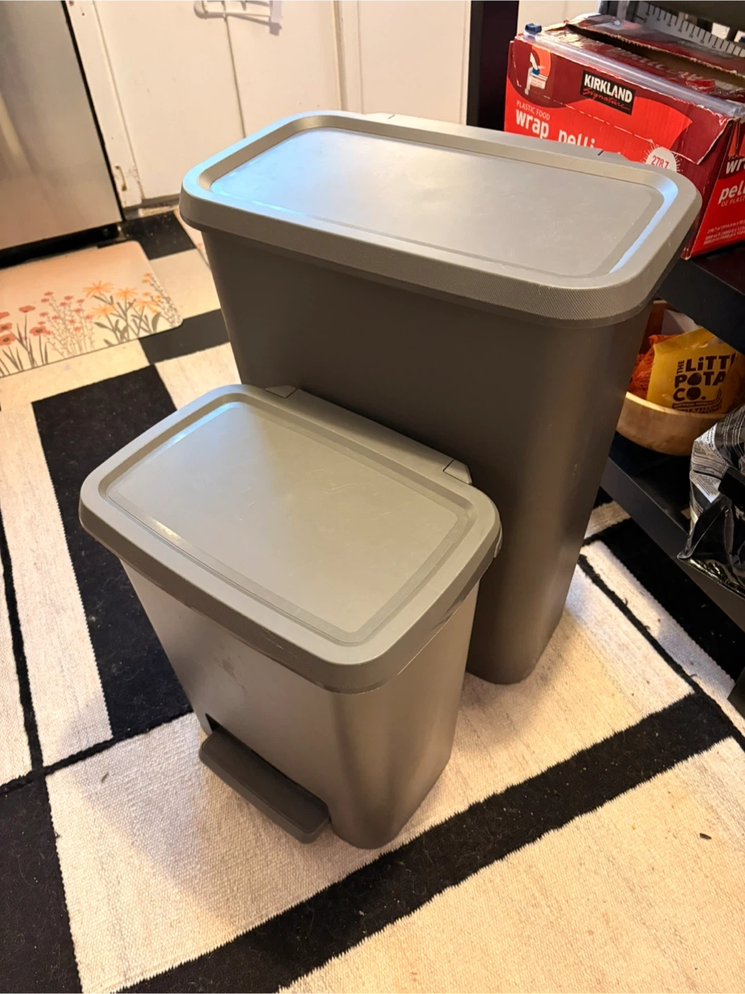 Selling a set of IKEA KNÖCKLA step trash cans in dark gray! One is 25L (7 gallon) for $30, and the other is 50L (13 gallon) for $40. Or the bundle for $60