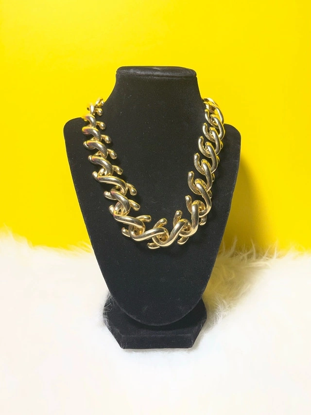 Add a bold statement to any outfit with this gold-tone chunky chain necklace! This eye-catching piece features a unique linked design that is sure to turn heads. Please note that this is a used item, with some signs of wear that add to its vintage charm. Features: - Chunky gold-tone chain - Unique linked design - Lobster clasp closure If the ad is still up, yes, it's available! Don't miss out on this shiny treasure!