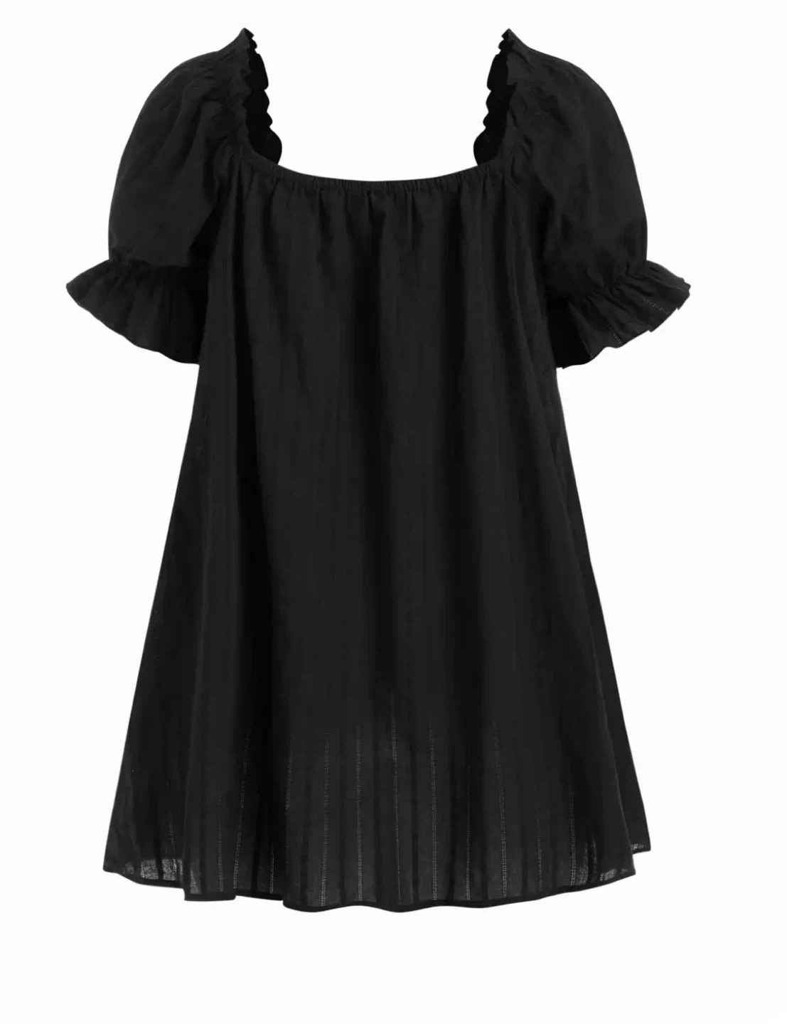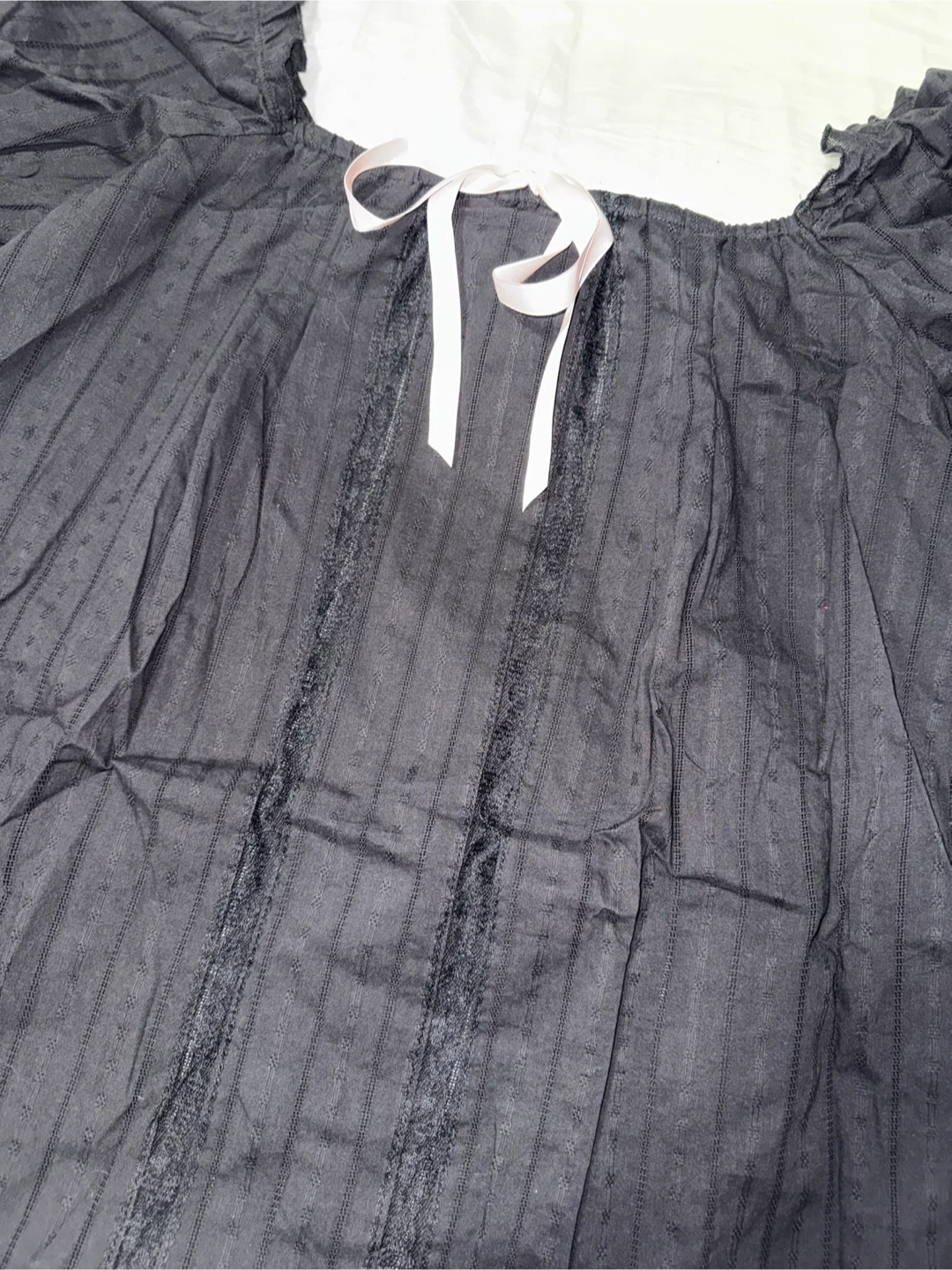 100%cotton U-neckline bowknot puff sleeve mini nighdress