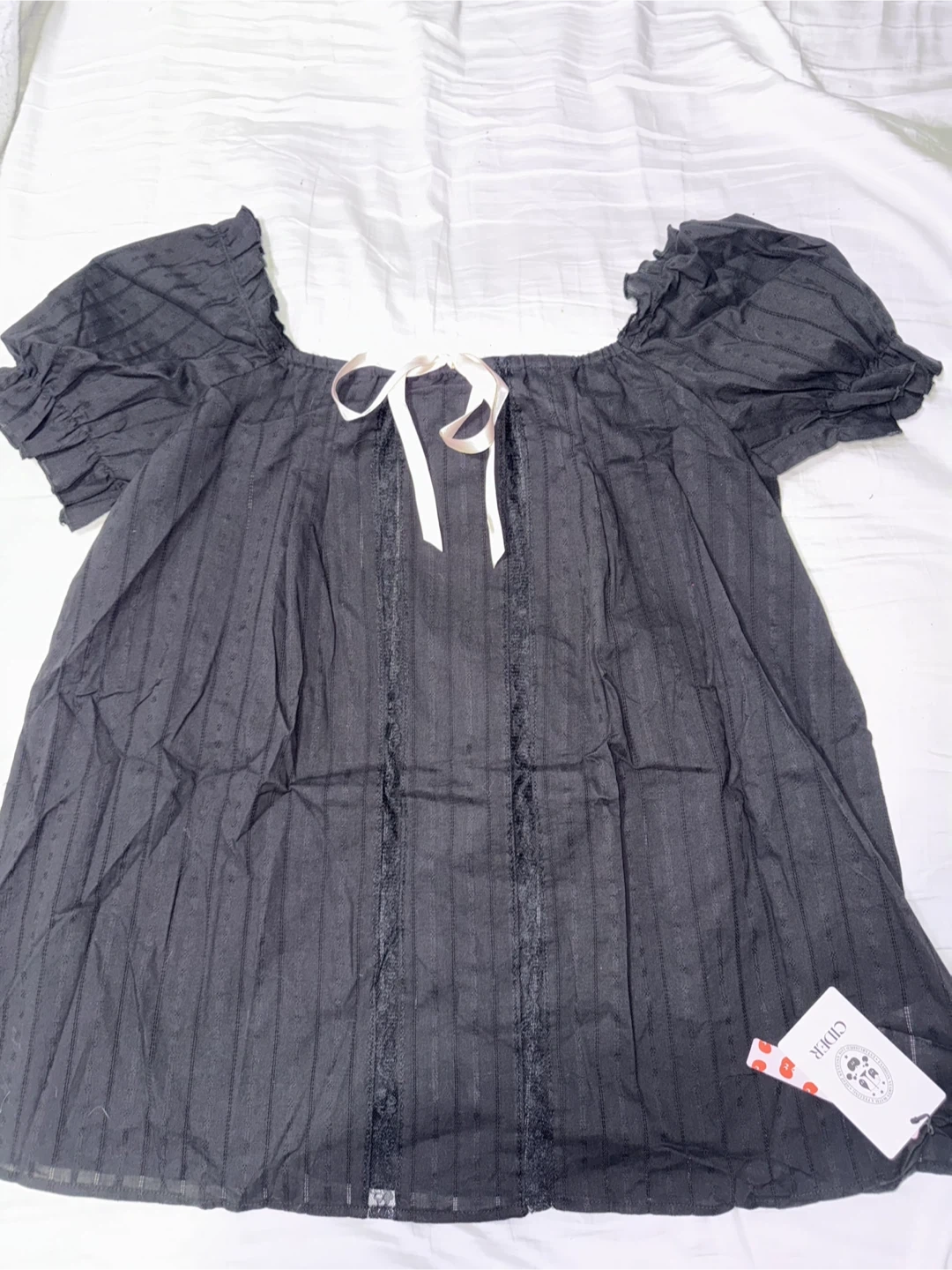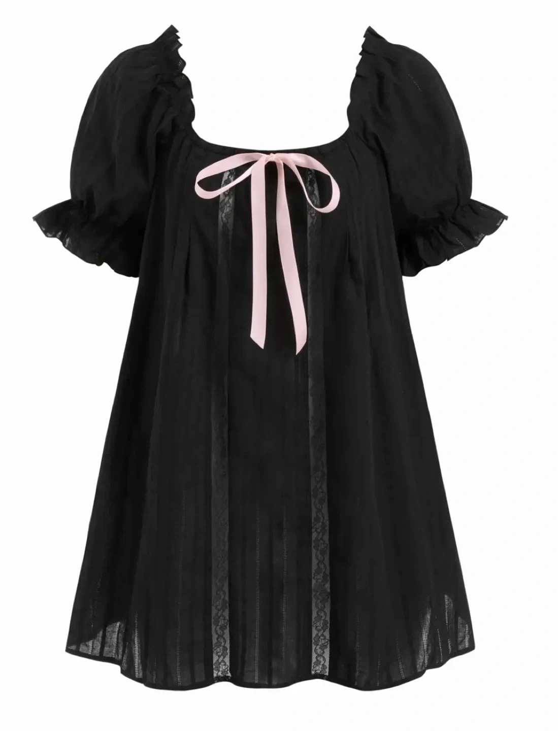 100%cotton U-neckline bowknot puff sleeve mini nighdress