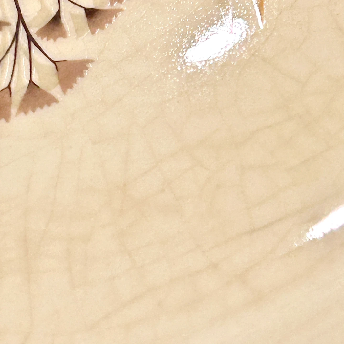 • Glazed ceramic tableware with fired decoration (the motif appears consistent with transfer/decal application with soft shading effects, then kiln-fired under/into the glaze depending on the production run).