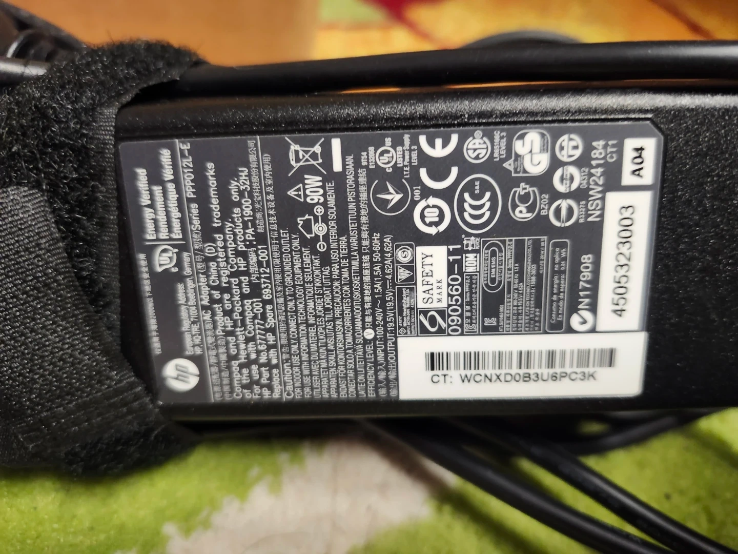 Selling an HP laptop charger, 90W power output. It's in good working condition and ready to power your laptop! Compatible with HP products only. Model: PPP012L-E.