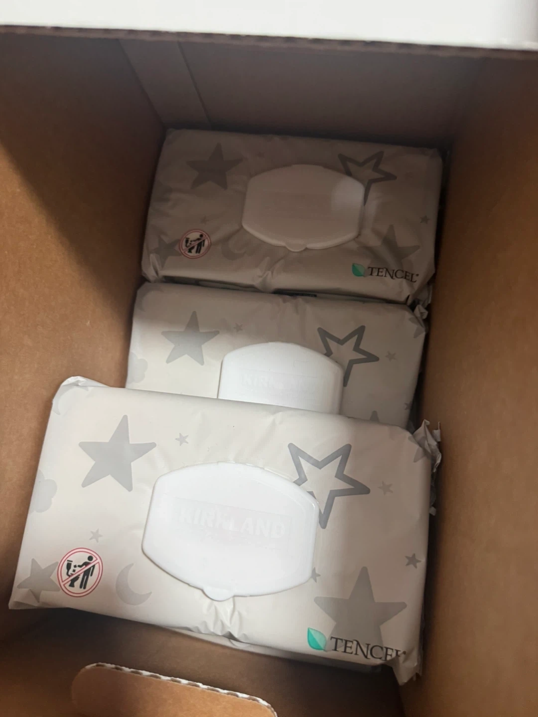 Selling a box of Kirkland Signature Baby Wipes! These are fragrance-free and hypoallergenic, perfect for sensitive skin. The box contains 4 packs of 100 wipes each, for a total of 400 wipes. They're clinically proven to help moisturize skin and are made with ultra-soft, plant-based fibres