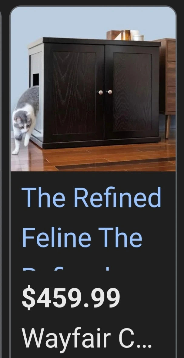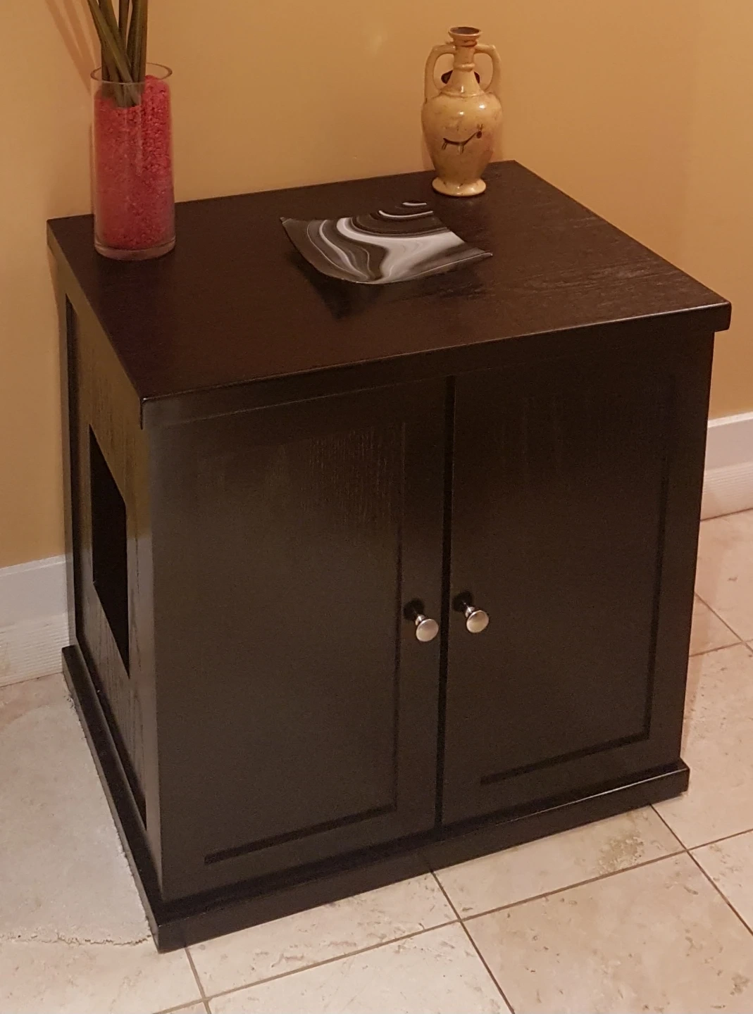 Perfect way to hide a cat litter box! It's like like an intensive piece of furniture. It's in perfect condition (only used 2 weeks) and your guests will never suspect a thing. Brand: The Refined Feline.