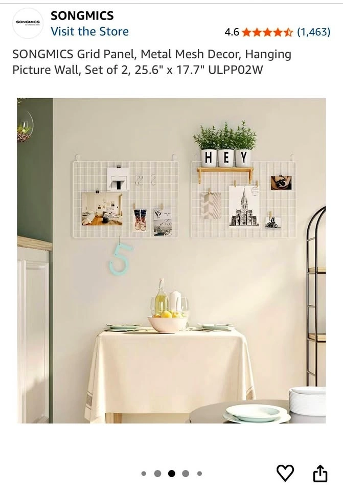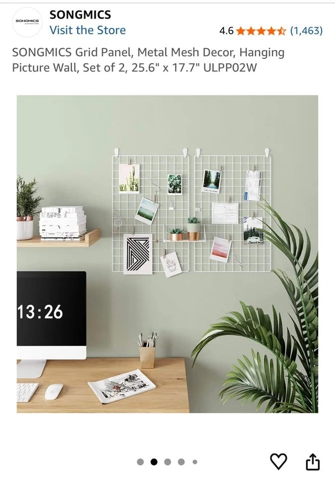 SONGMICS Grid Panel, Metal Mesh Decor, Hanging Picture Wall, Set of 2, 25.6" x 17.7"