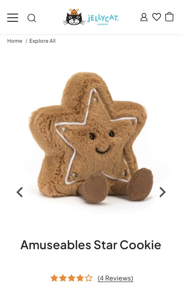 This adorable Jellycat Amuseables Star Cookie plush is ready to bring smiles! In excellent condition, it's a cuddly companion with a sweet expression and soft texture, perfect for playtime or decoration.