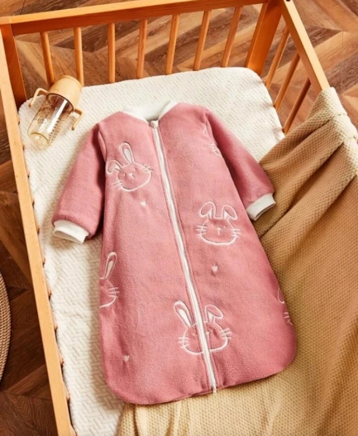 Snuggle your little one in this adorable pink baby sleeping bag! It features a cute bunny design and is made of a soft, cozy material to keep your baby warm and comfortable during sleep. Perfect for a good night's rest!