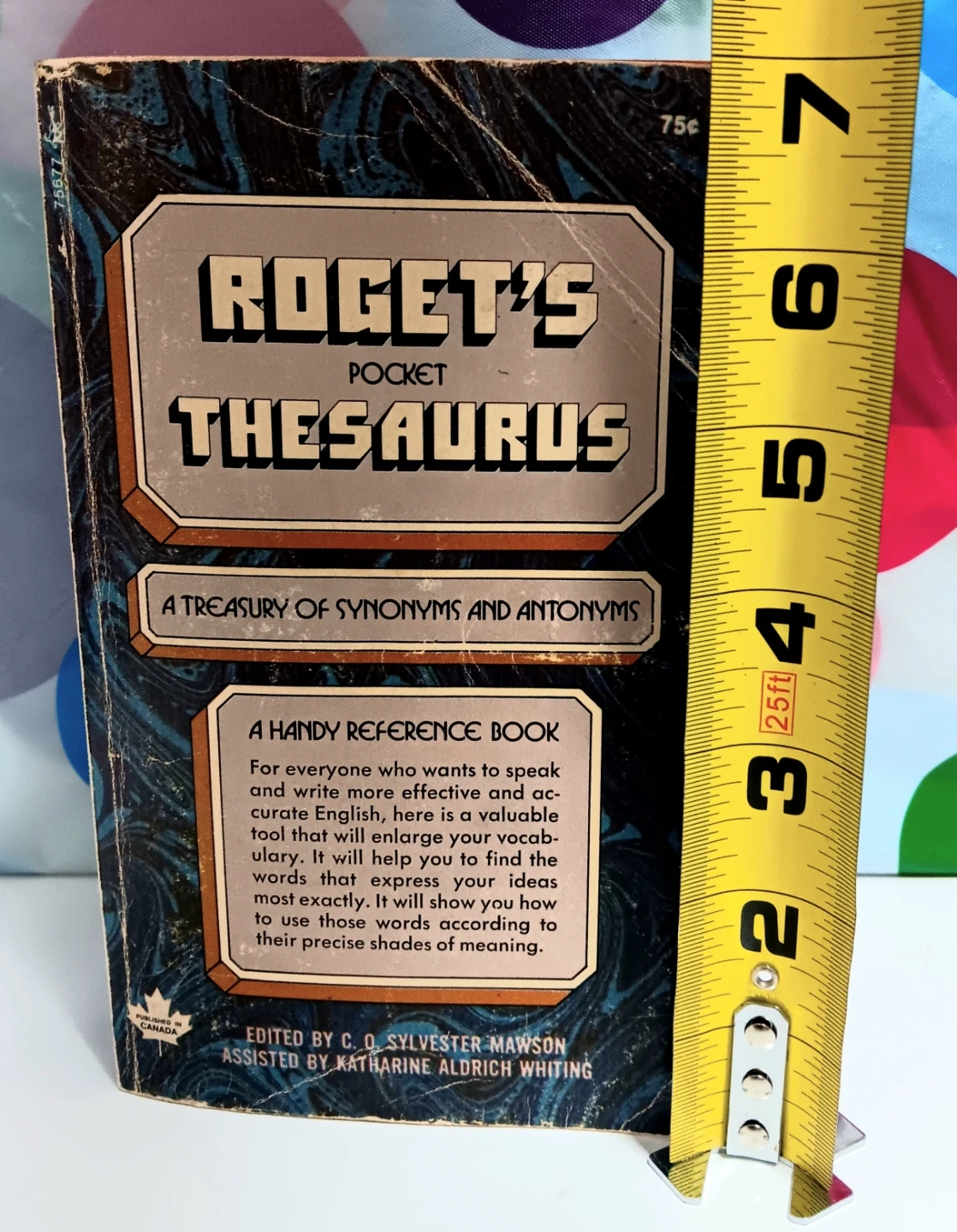 Dive into the world of words with this vintage Roget's Pocket Thesaurus, a treasury of synonyms and antonyms perfect for anyone looking to enrich their vocabulary; this edition is edited by C.O. Sylvester-Mawson and assisted by Katharine Aldrich Whiting. Though this handy reference book has seen some use, it remains a valuable tool for expressing ideas with precision. It's compact enough to carry around, ensuring you're never at a loss for words!