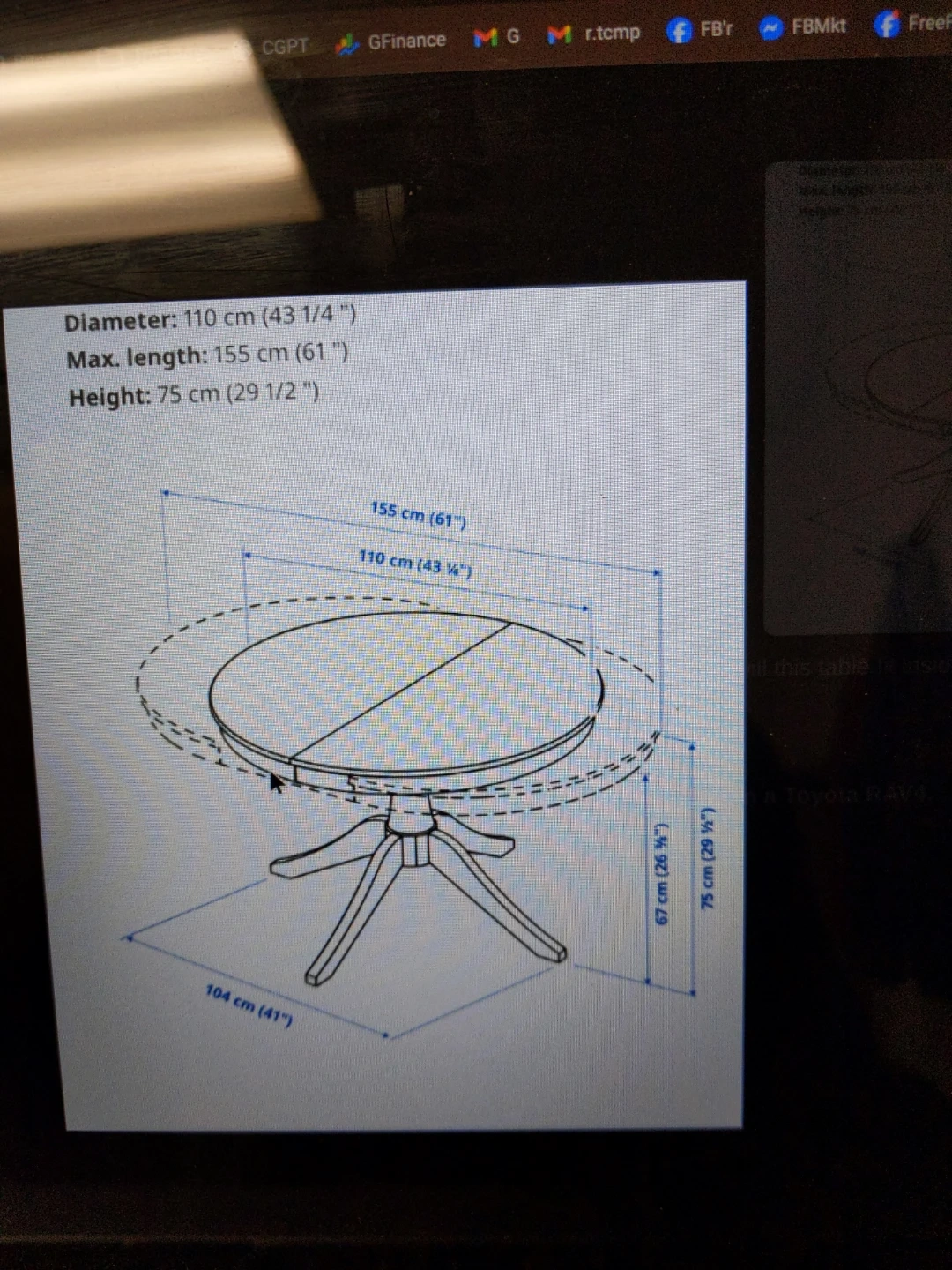 Retail for $529 + HST = $598 and in addition this table is mostly assembled; the legs are removed for storage, the trunk is still attached, each leg can be quickly reattached to the trunk with 1 screw and nut (included); see pic.; table fits inside a Toyota Rav 4 as is.