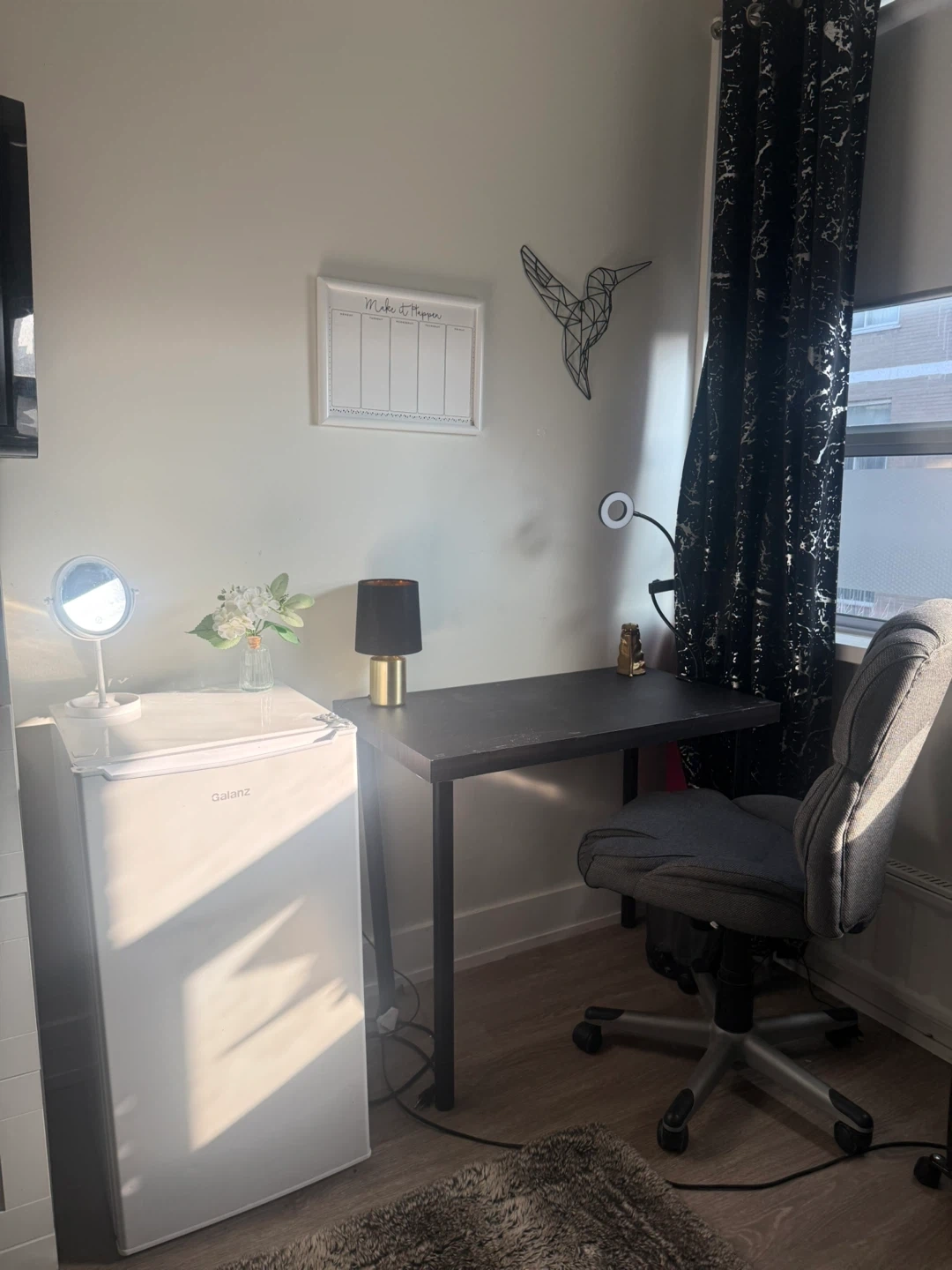 🛏️Furnished with single bed with, 43 "inch TV with fire tv installed , built-in closet, extra dresser, lamp and minibar. Access to kitchen.