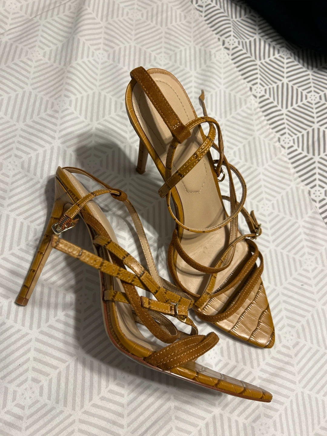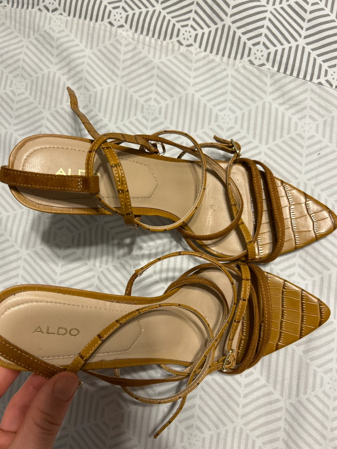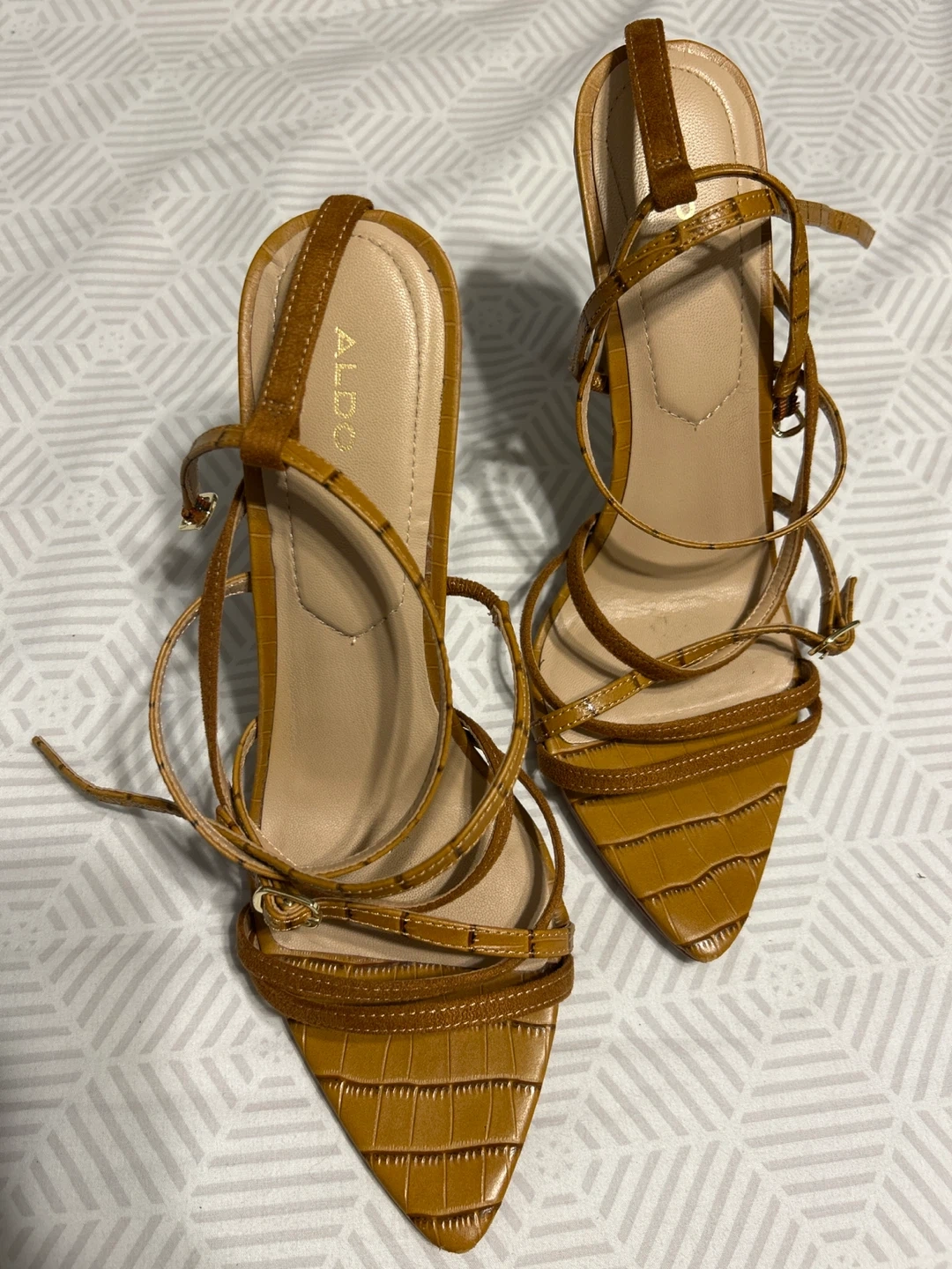 Stylish ALDO heels in a beautiful brown colour! These are a size 10 US, perfect for dressing up any outfit. They show some signs of wear but still have lots of life left