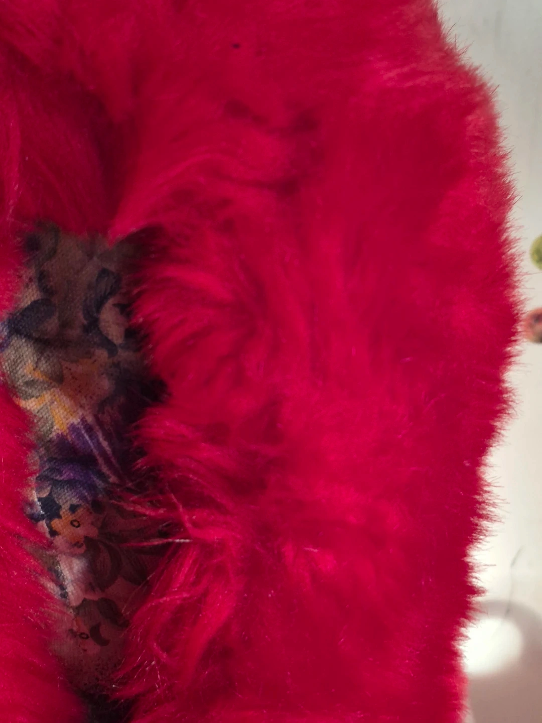 Selling a red faux fur coat. It's in excellent condition and ready for a new owner! The material is soft and fluffy,feels real perfect for keeping super warm and stylish. P.S if you're heavy busted it fits like a medium. I wear large had to buy Xl to fit properly.