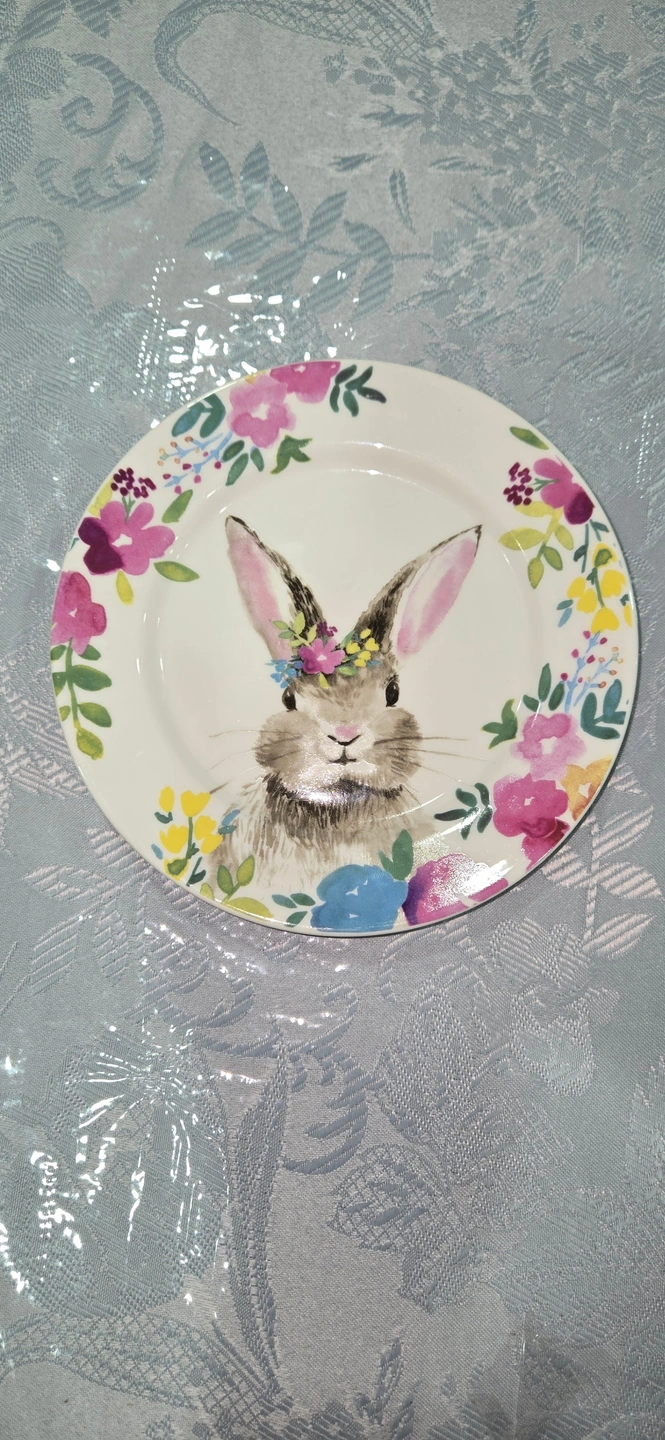 This is a Ciroa Easter Bunny porcelain salad plate in the floral bunny color/pattern.