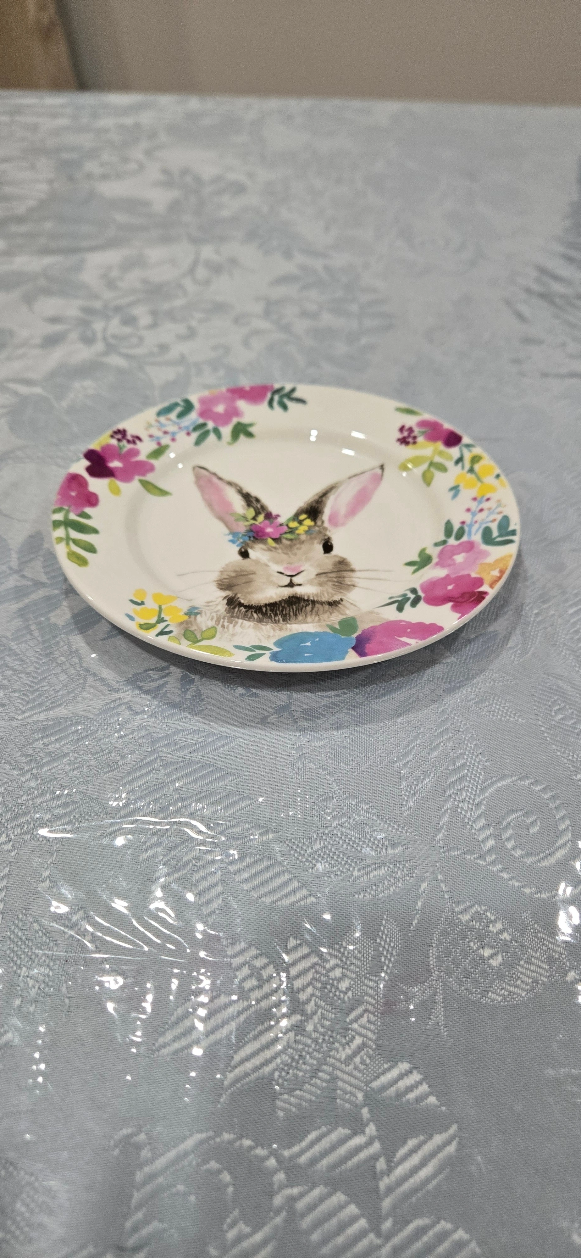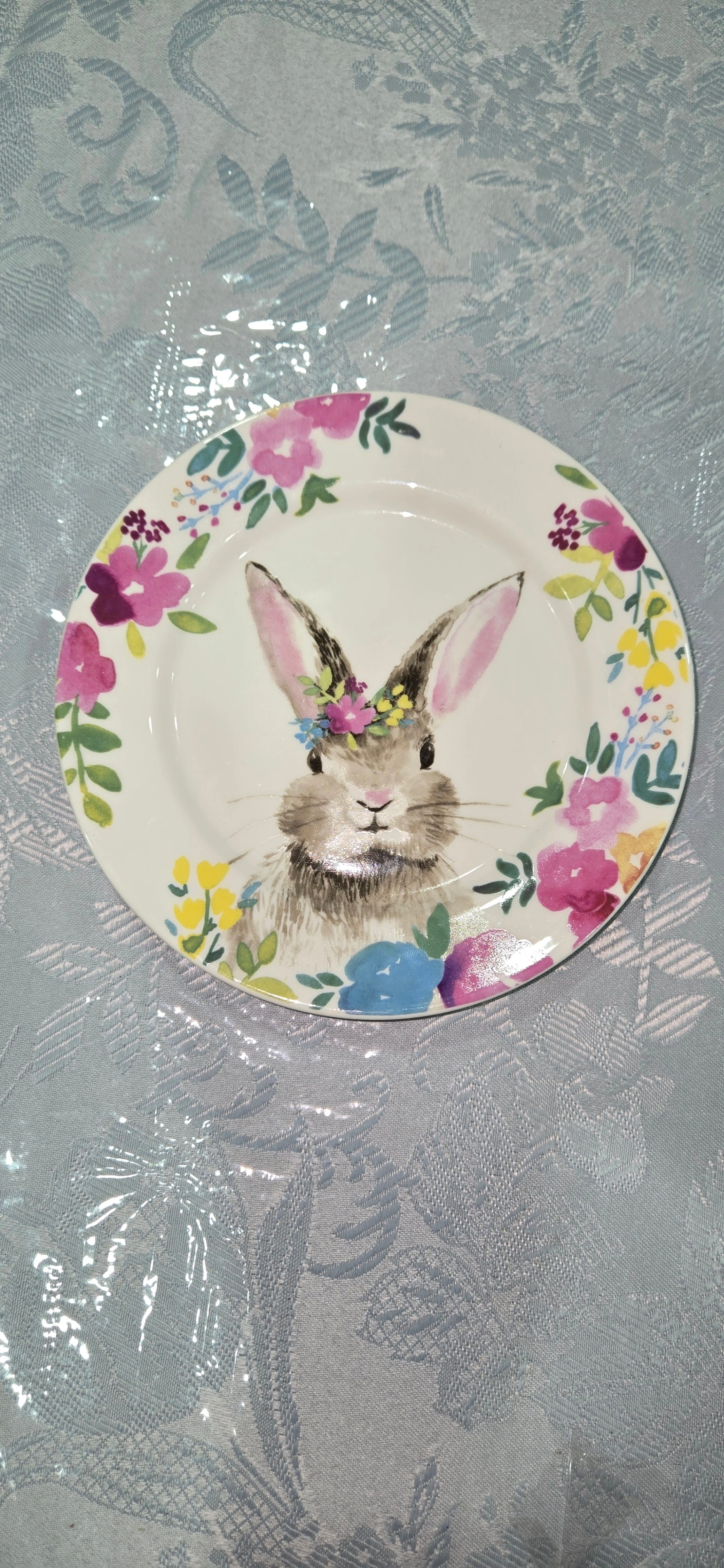 This is a Ciroa Easter Bunny porcelain salad plate in the floral bunny color/pattern.