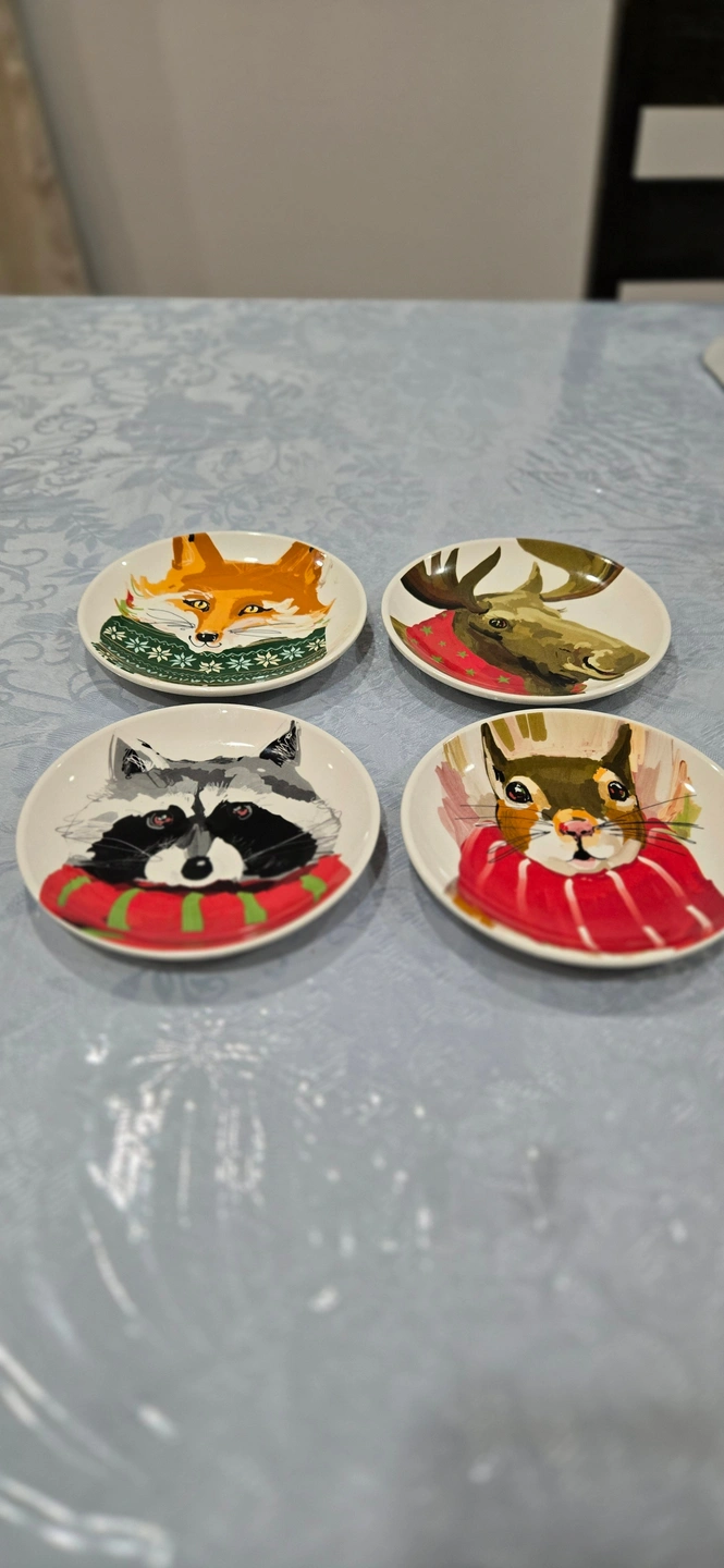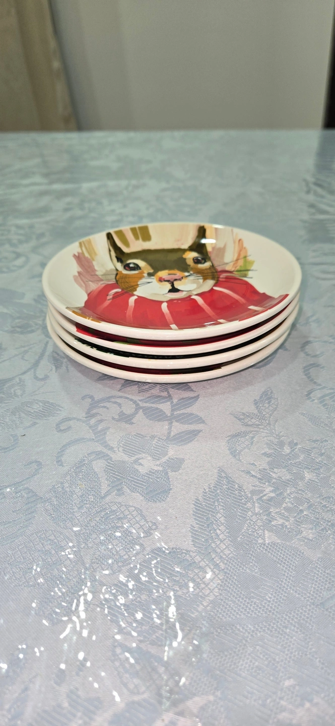 Set of 4 Magenta Woodland Critters Dessert Plates