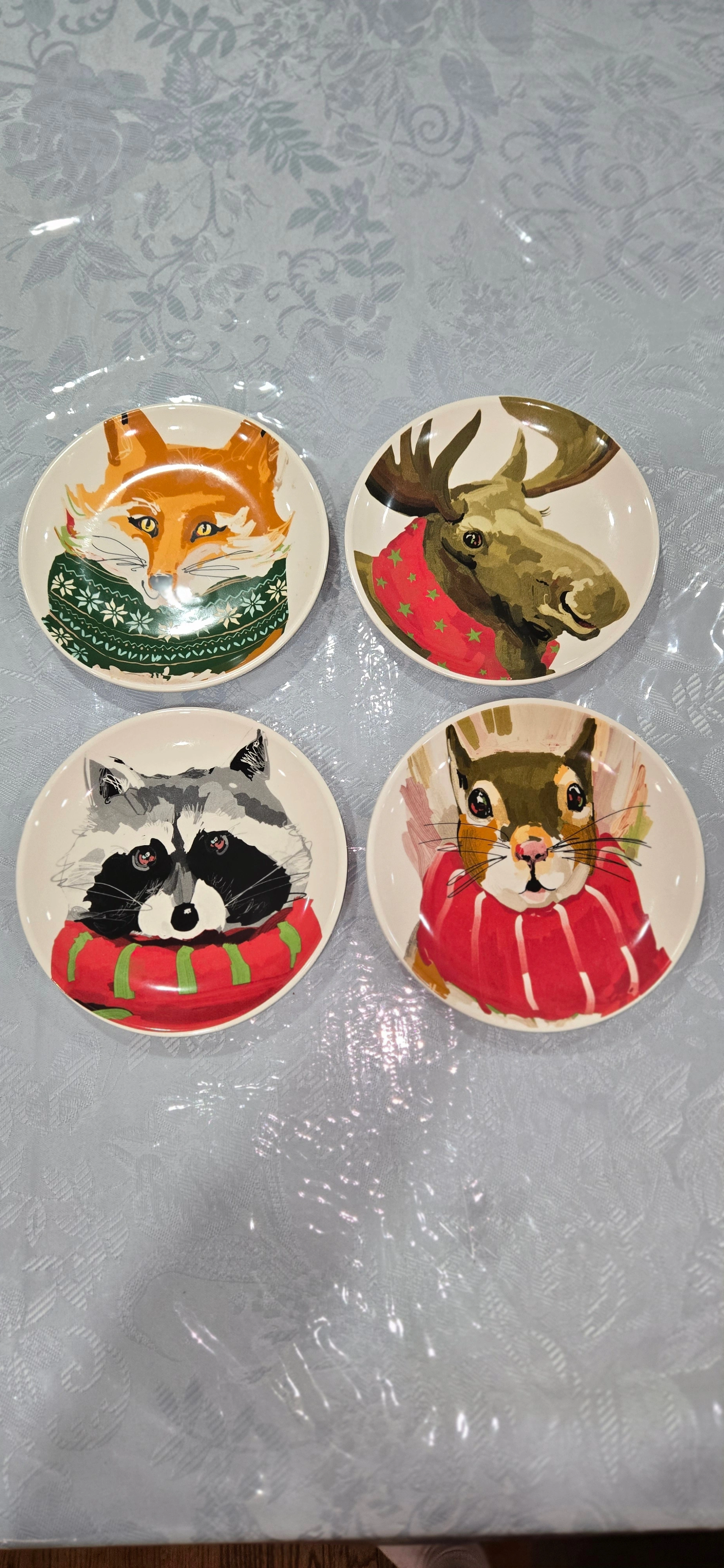 Set of 4 Magenta Woodland Critters Dessert Plates