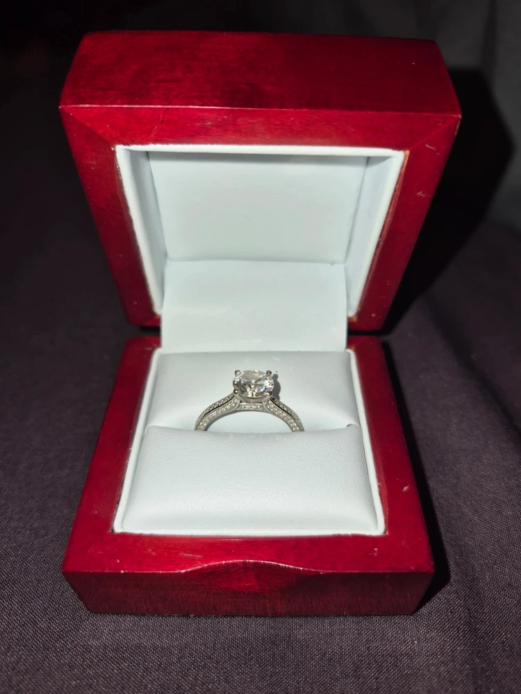 Selling a beautiful 14K solid white gold diamond wedding ring. 1.5C Lab Diamond will pass tester /VS2 clarity...It comes in a lovely red box, ready for its next chapter.