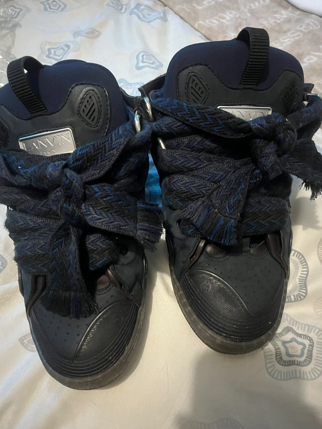 Selling a pair of Lanvin Curb sneakers! They are in used condition, as you can see in the photos. The color is a dark navy blue. Please reach out if you have any questions!
