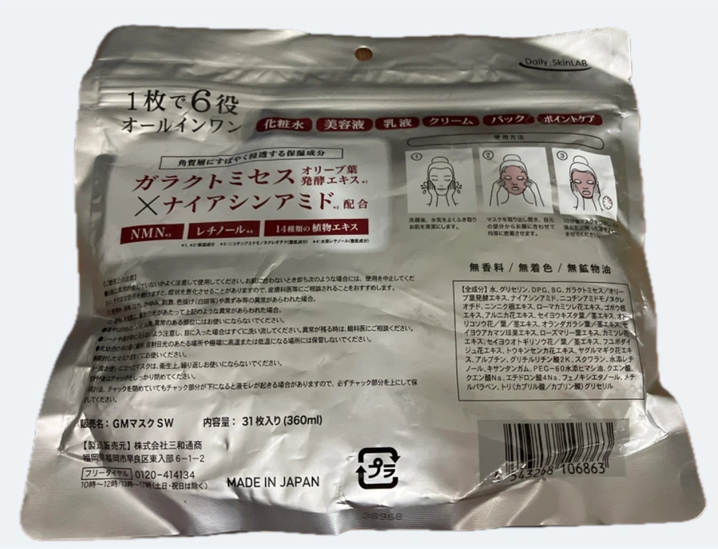 Get ready for some deep hydration with this Daily SkinLAB Deep Moist Face Mask! This package contains 31 sheets, perfect for incorporating into your regular skincare routine. Made in Japan, these masks are designed to provide intense moisture and leave your skin feeling refreshed and revitalized