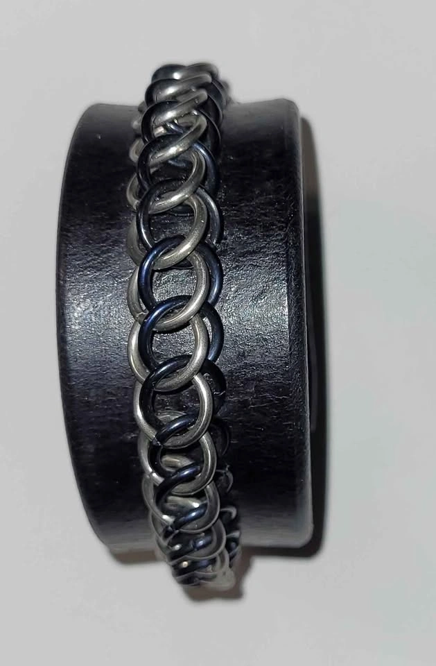 Black Leather and Chainmaille Bracelet